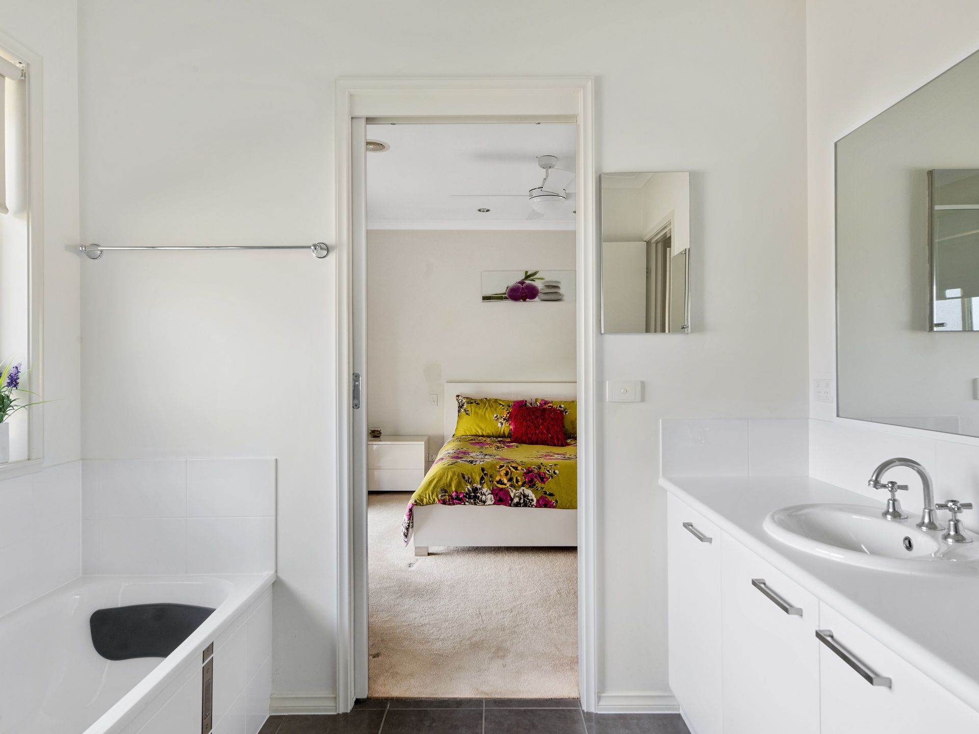 - bathtub & shower recess, large vanity and includes his&hers mirrored wall cabinets
