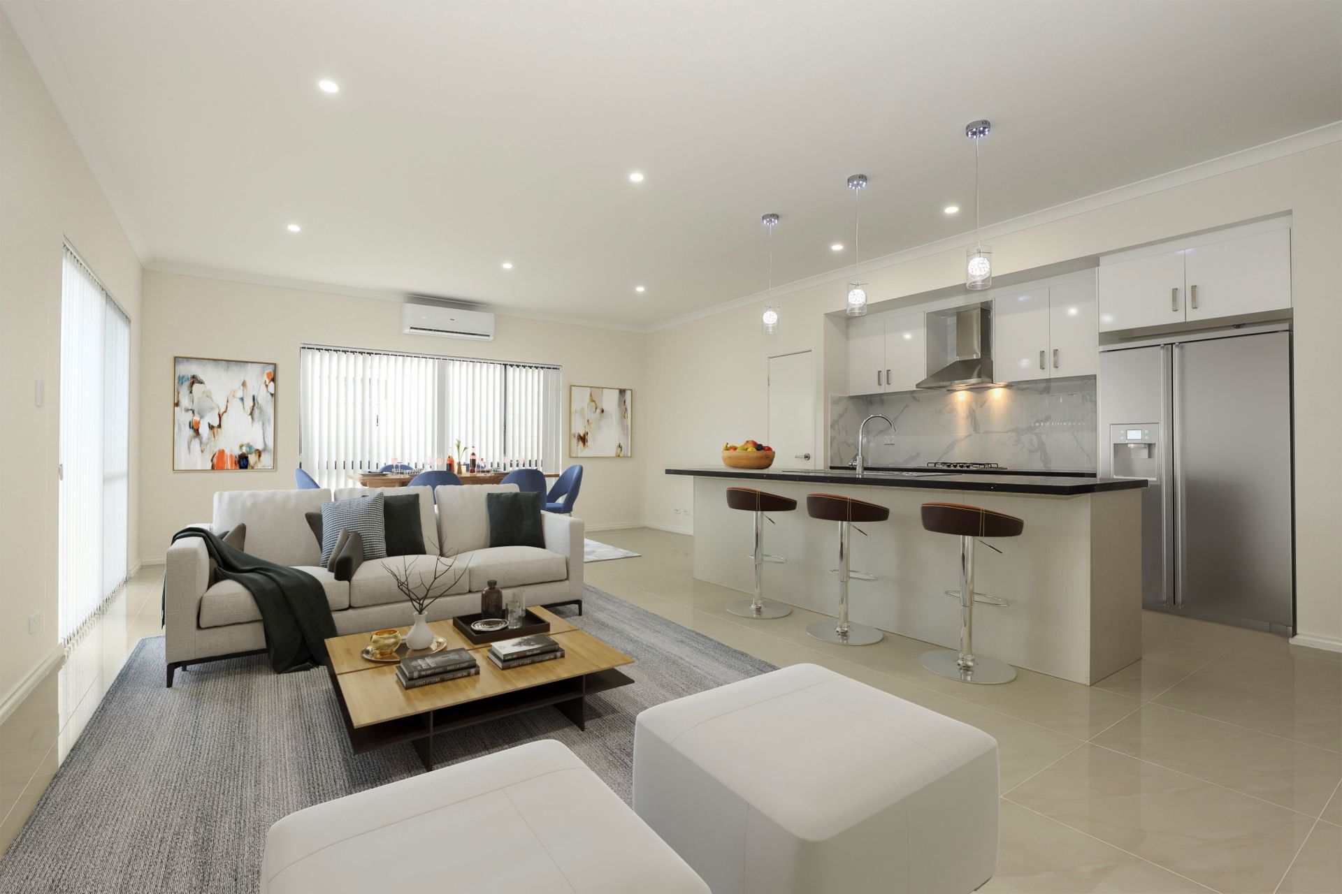 • Open plan kitchen, living and dining
