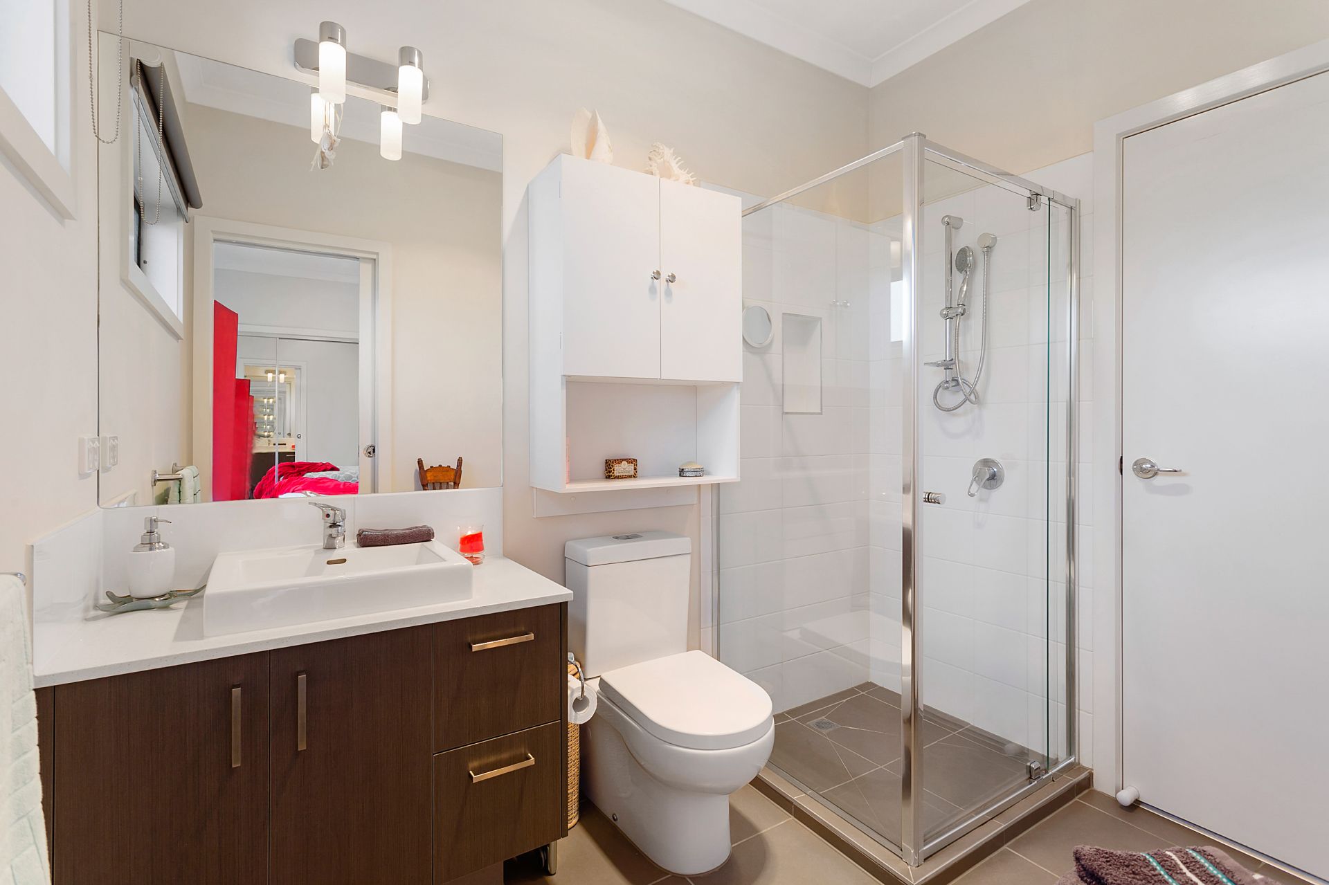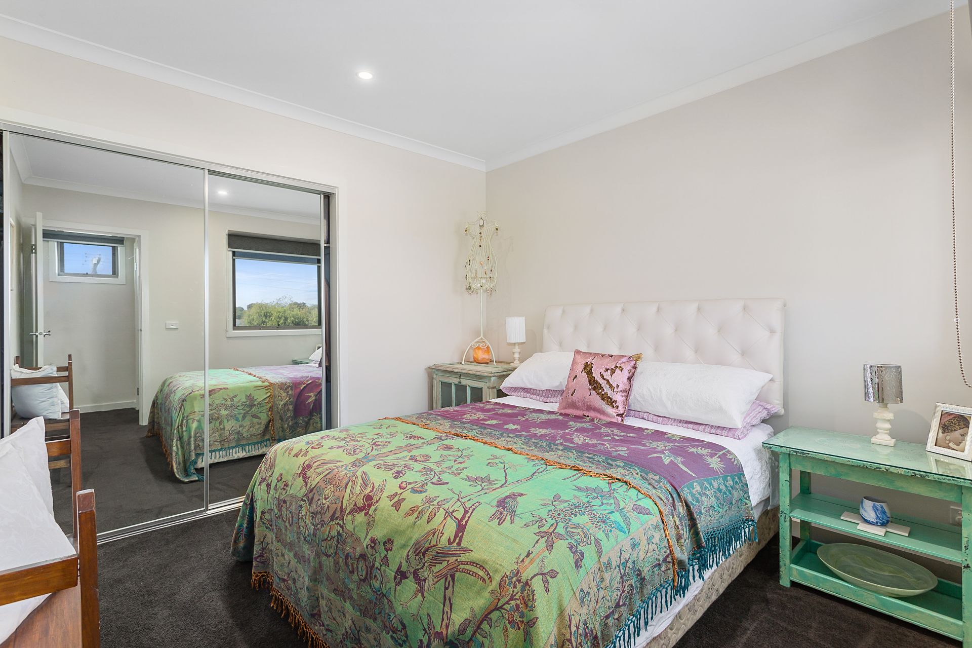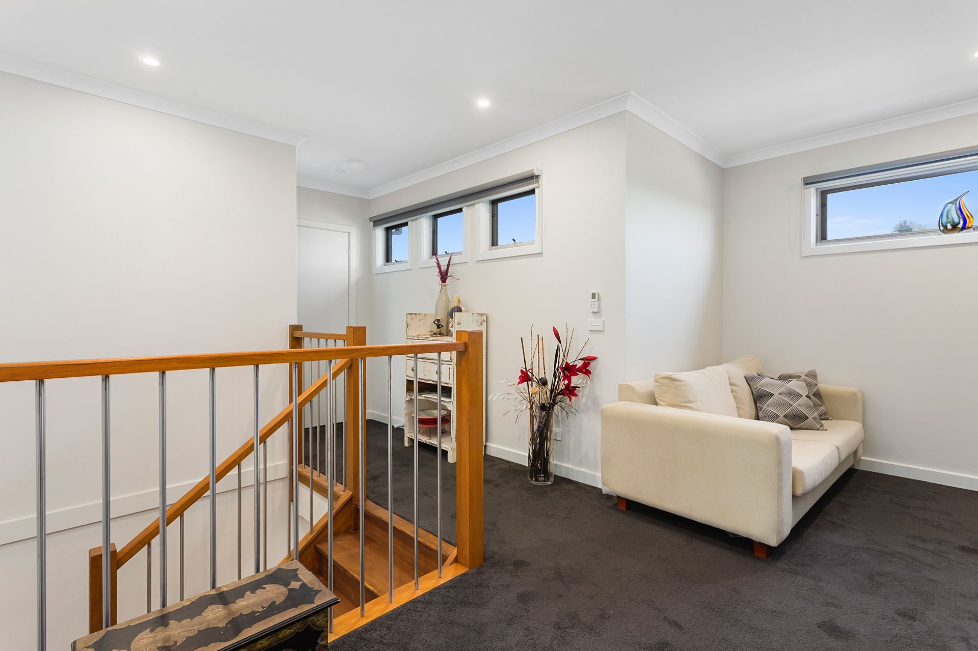 UPSTAIRS: 2 bedrooms with mirrored BIR's, a 2nd private lounge, bathroom with vanity, separate shower and bath and a separate wc off the hallway.