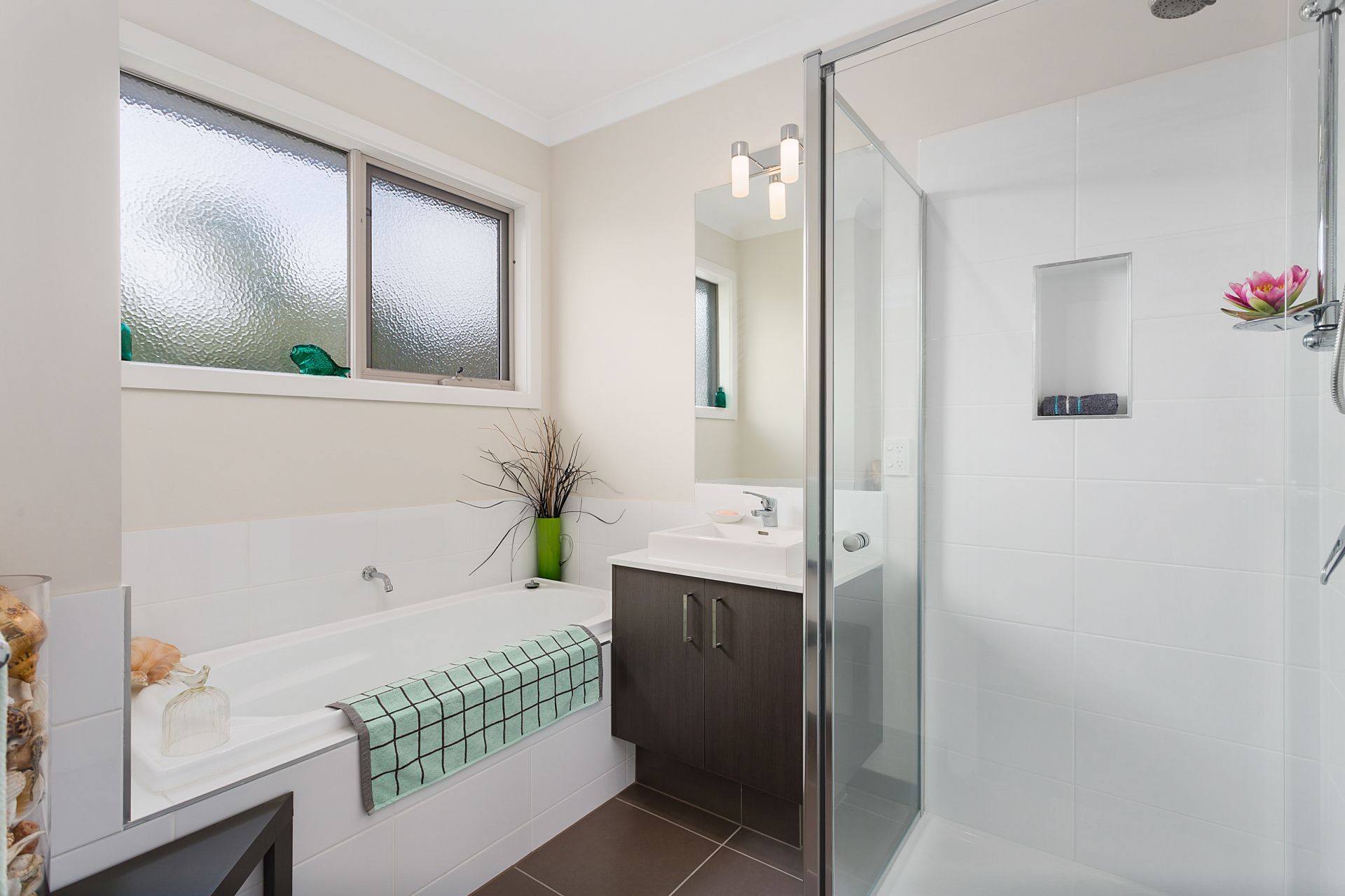 -bamboo flooring, carpets to bedrooms & tiled bathrooms