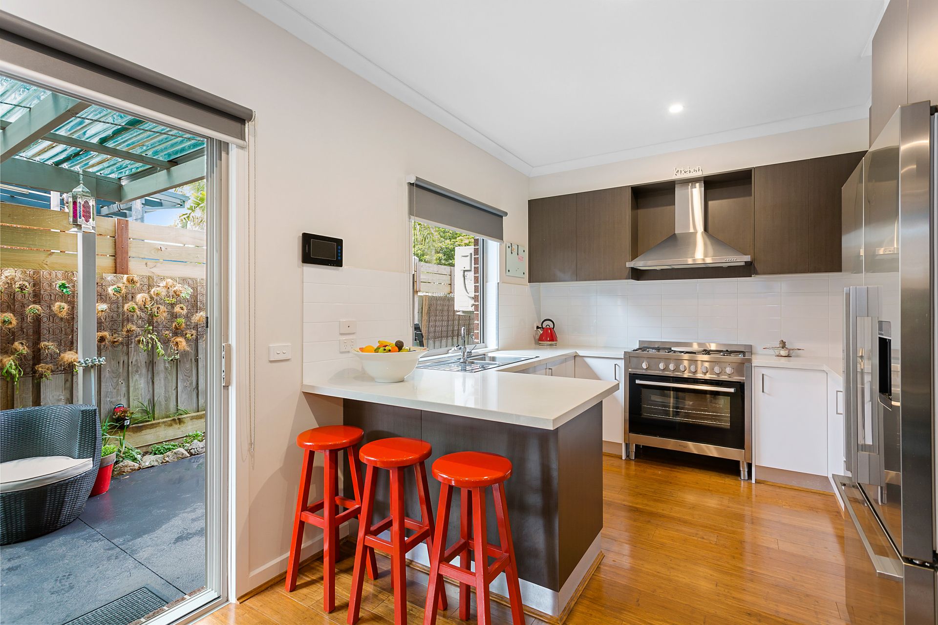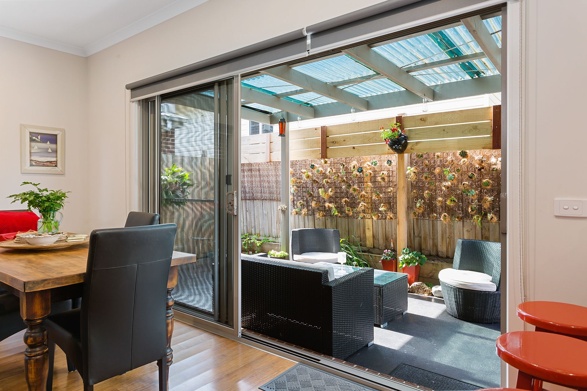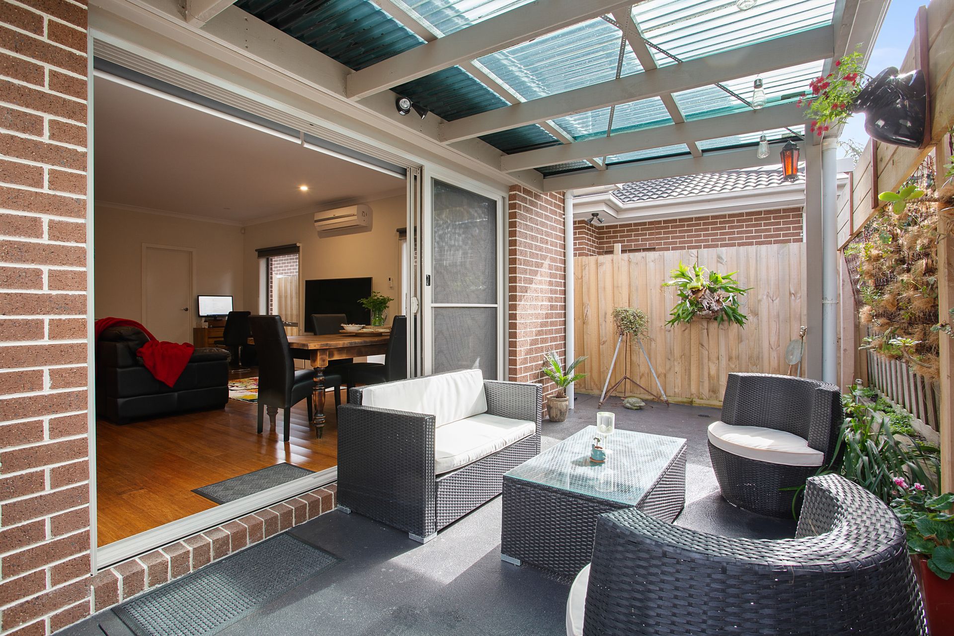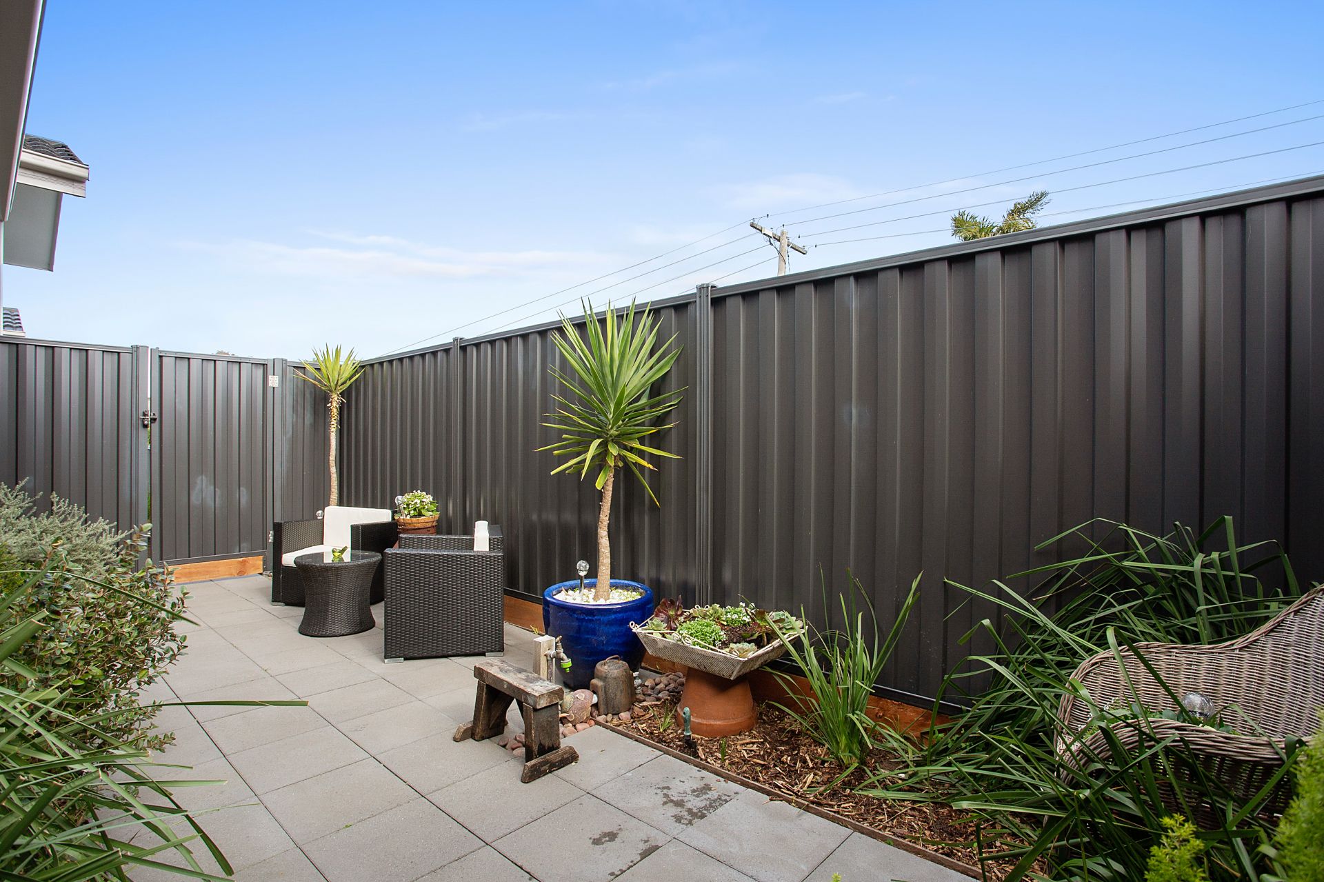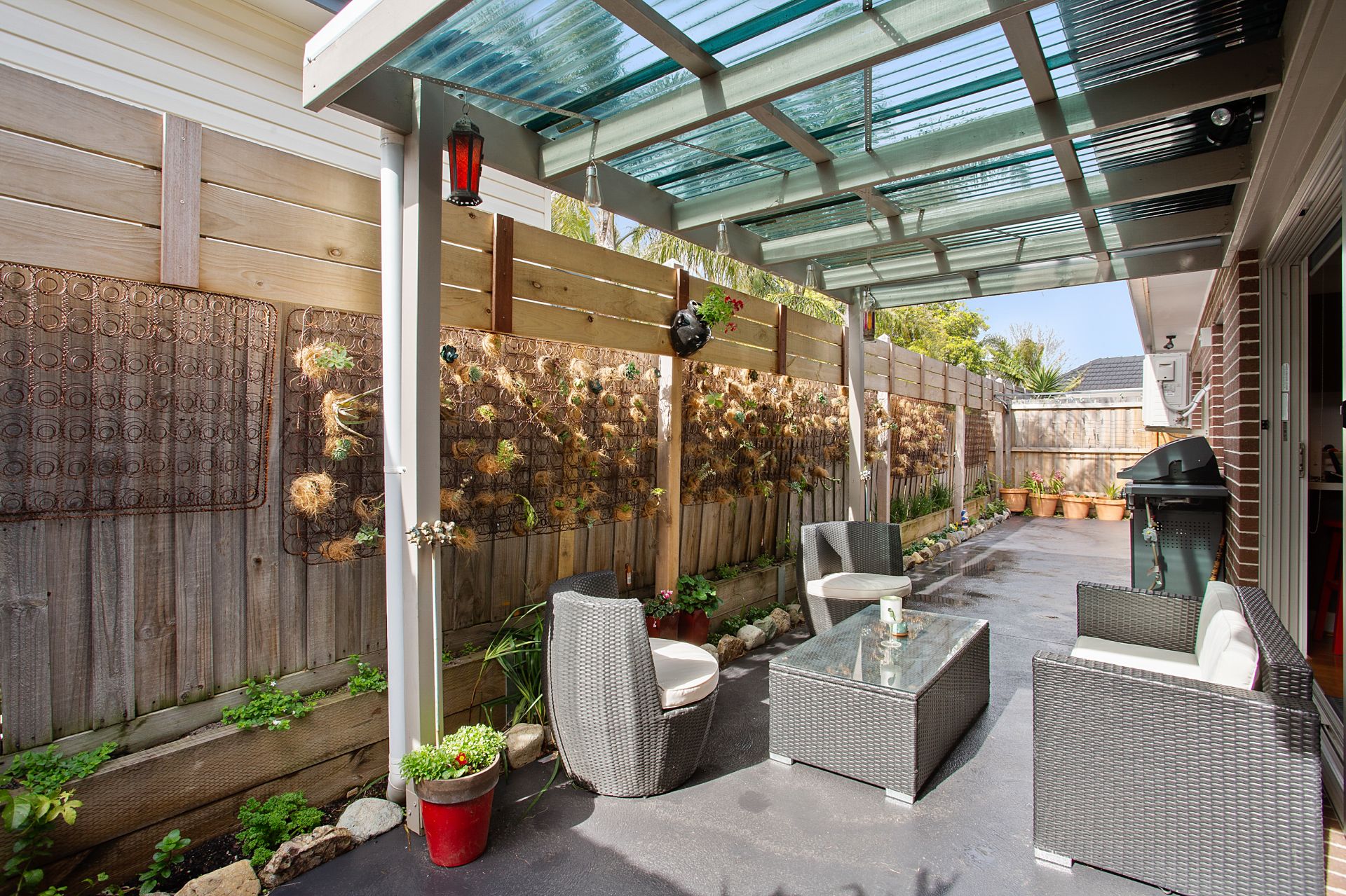 -private tiled courtyard at the front catches the afternoon sun while the private rear patio catches the morning sun.