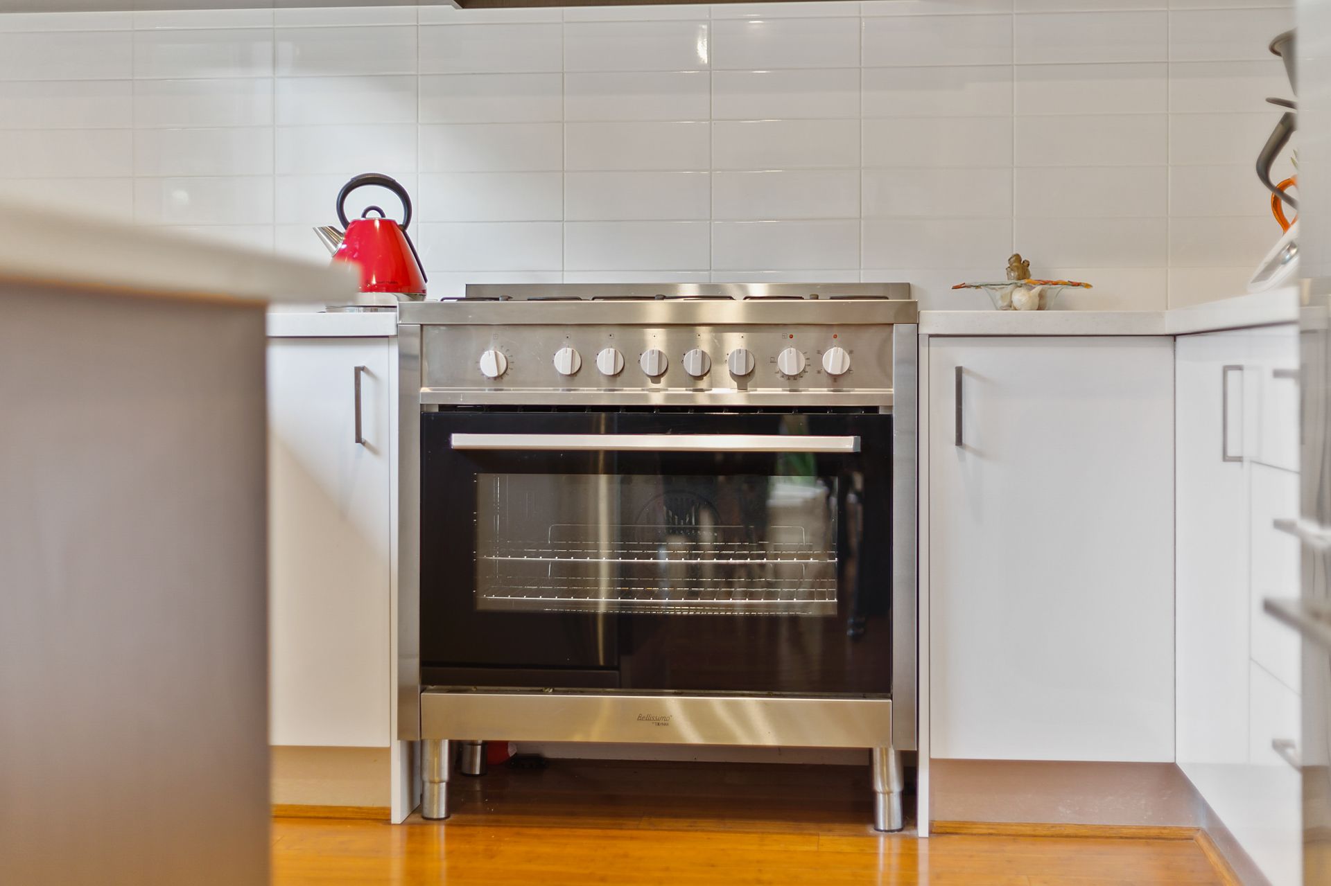 -40mm stone benchtop in kitchen with soft closing drawers & stainless steel european appliances