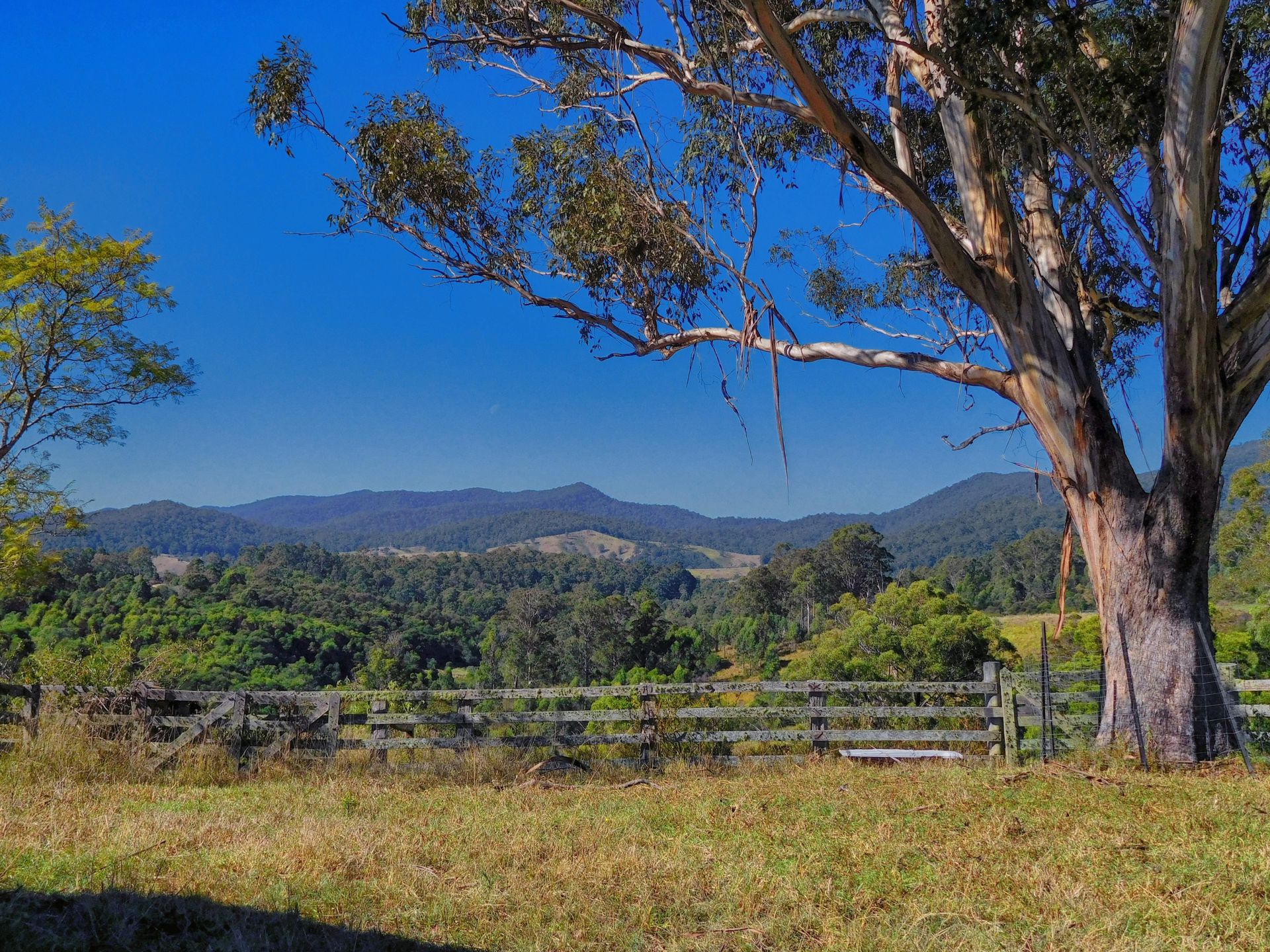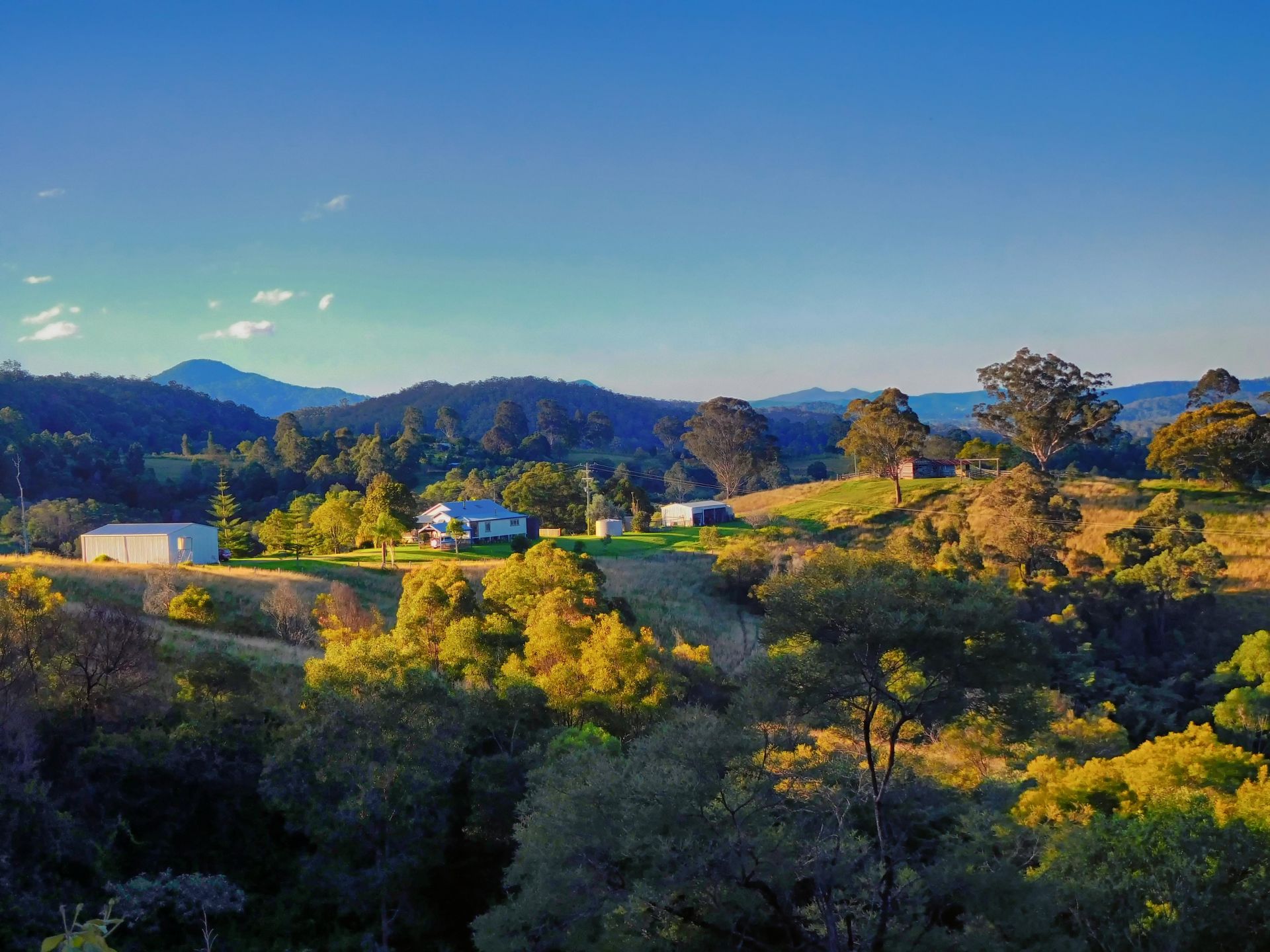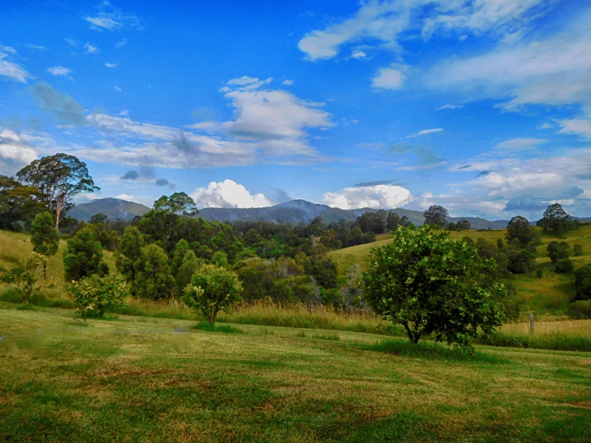 Mostly cleared undulating acres, with part regeneration and part established trees with pockets of rainforest gullies.