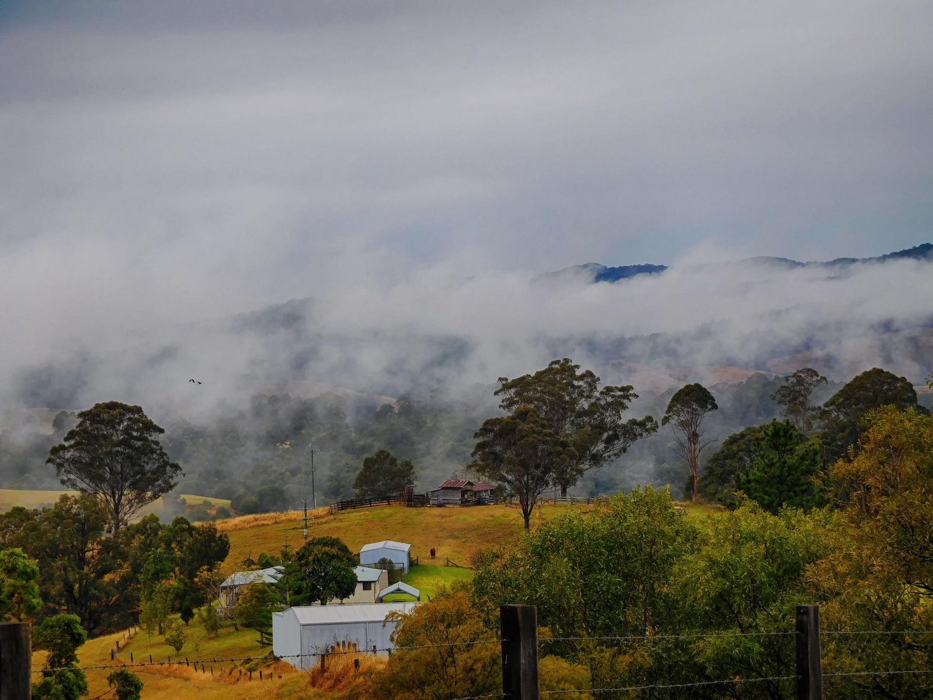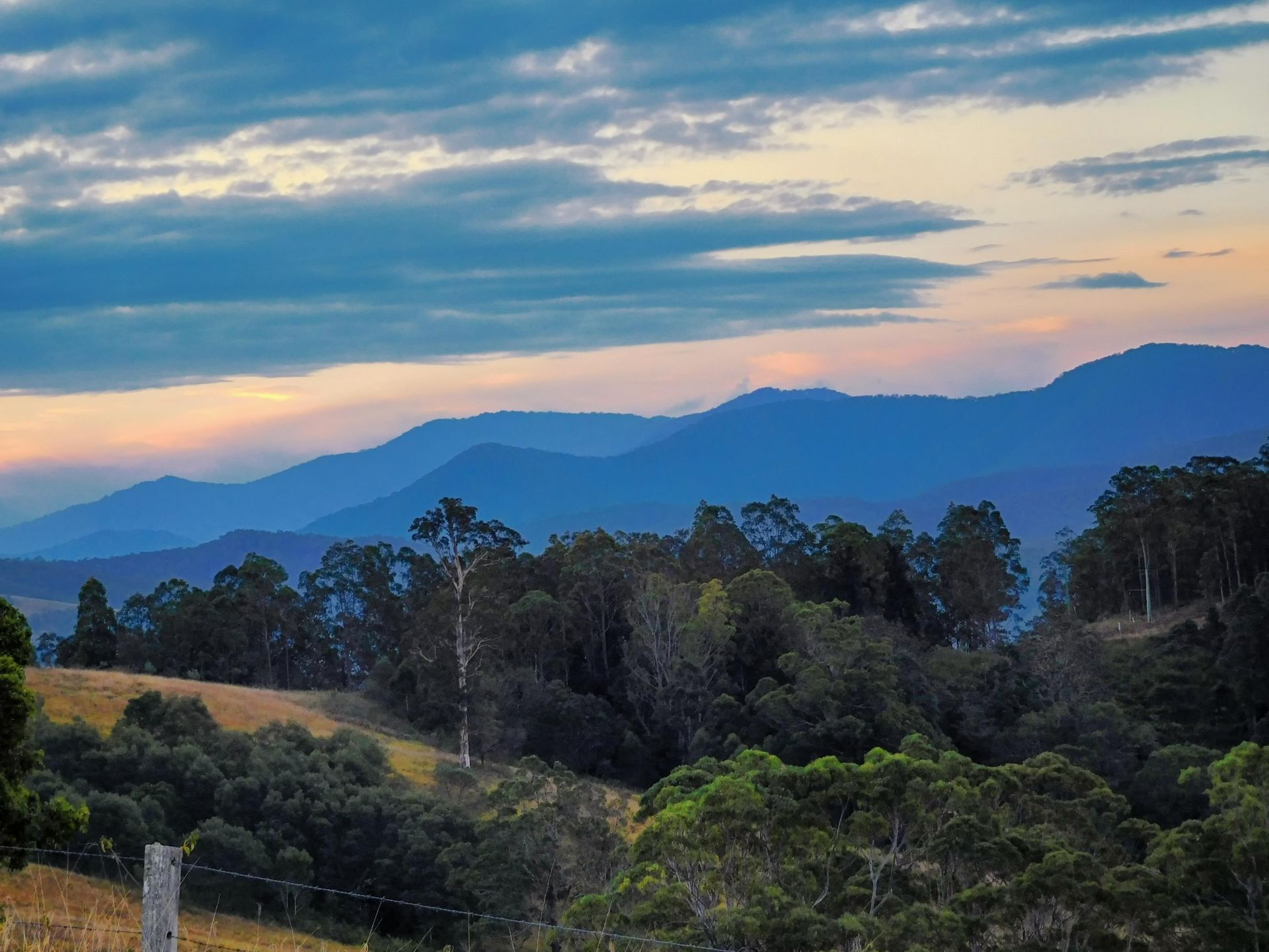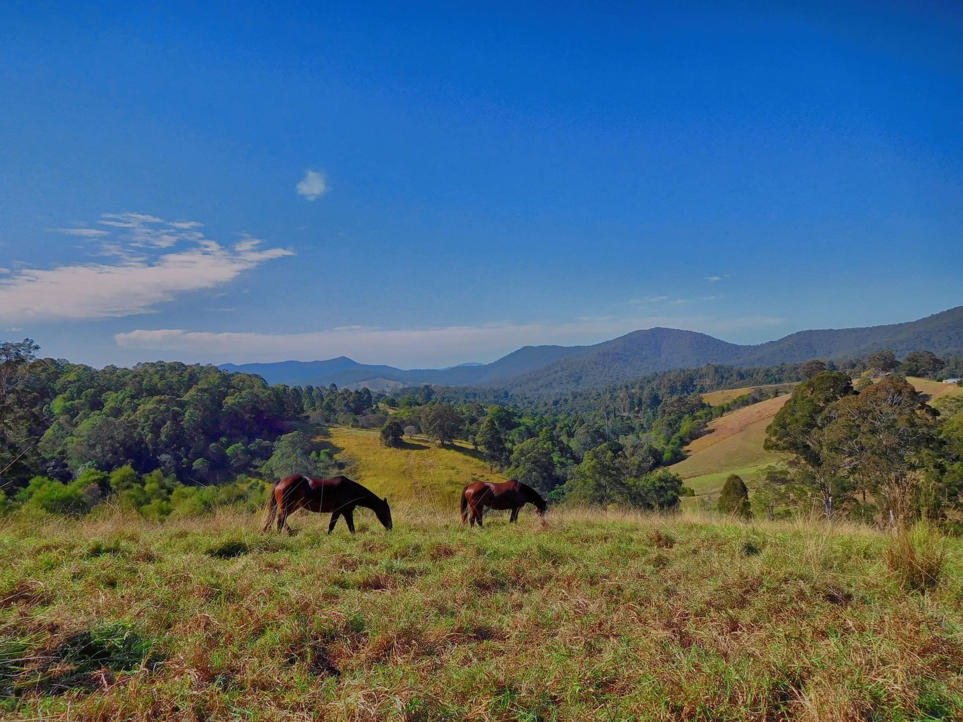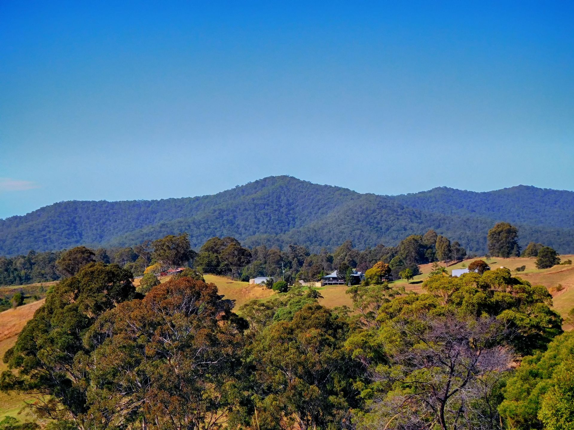Mostly cleared undulating acres, with part regeneration and part established trees with pockets of rainforest gullies.