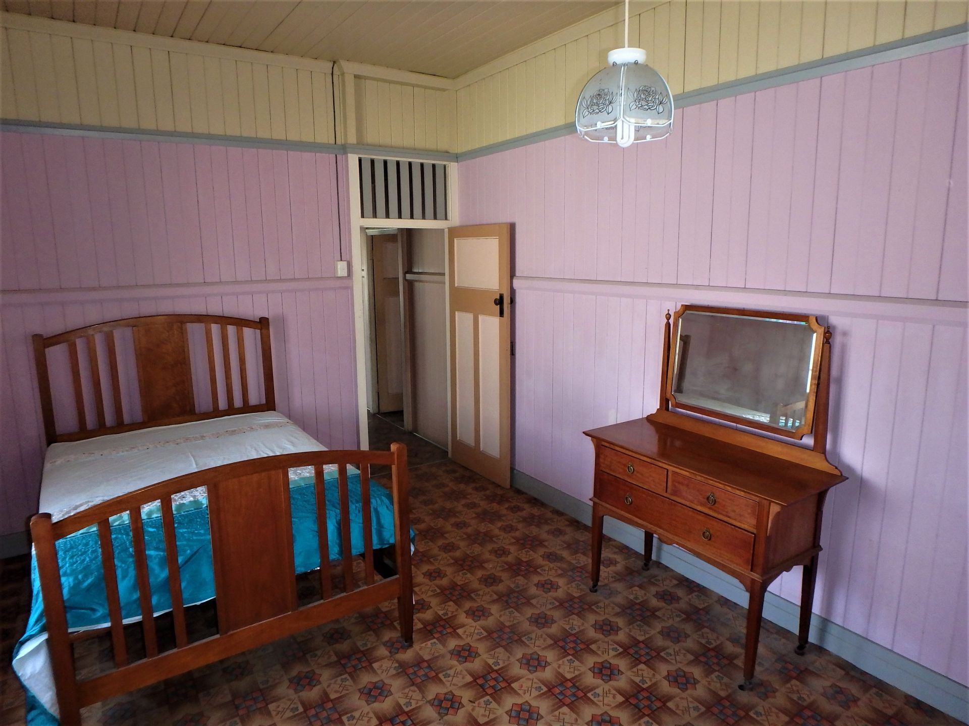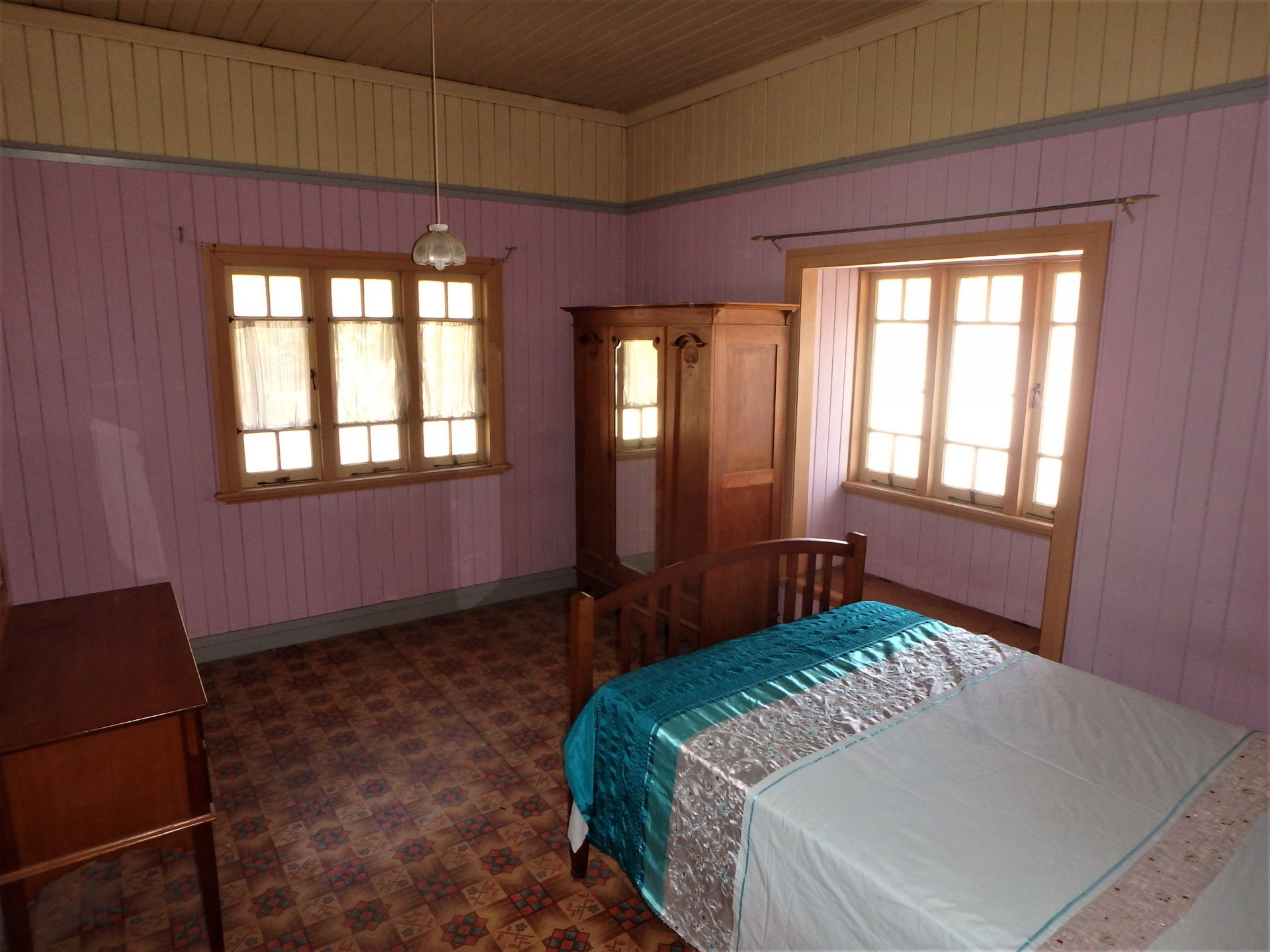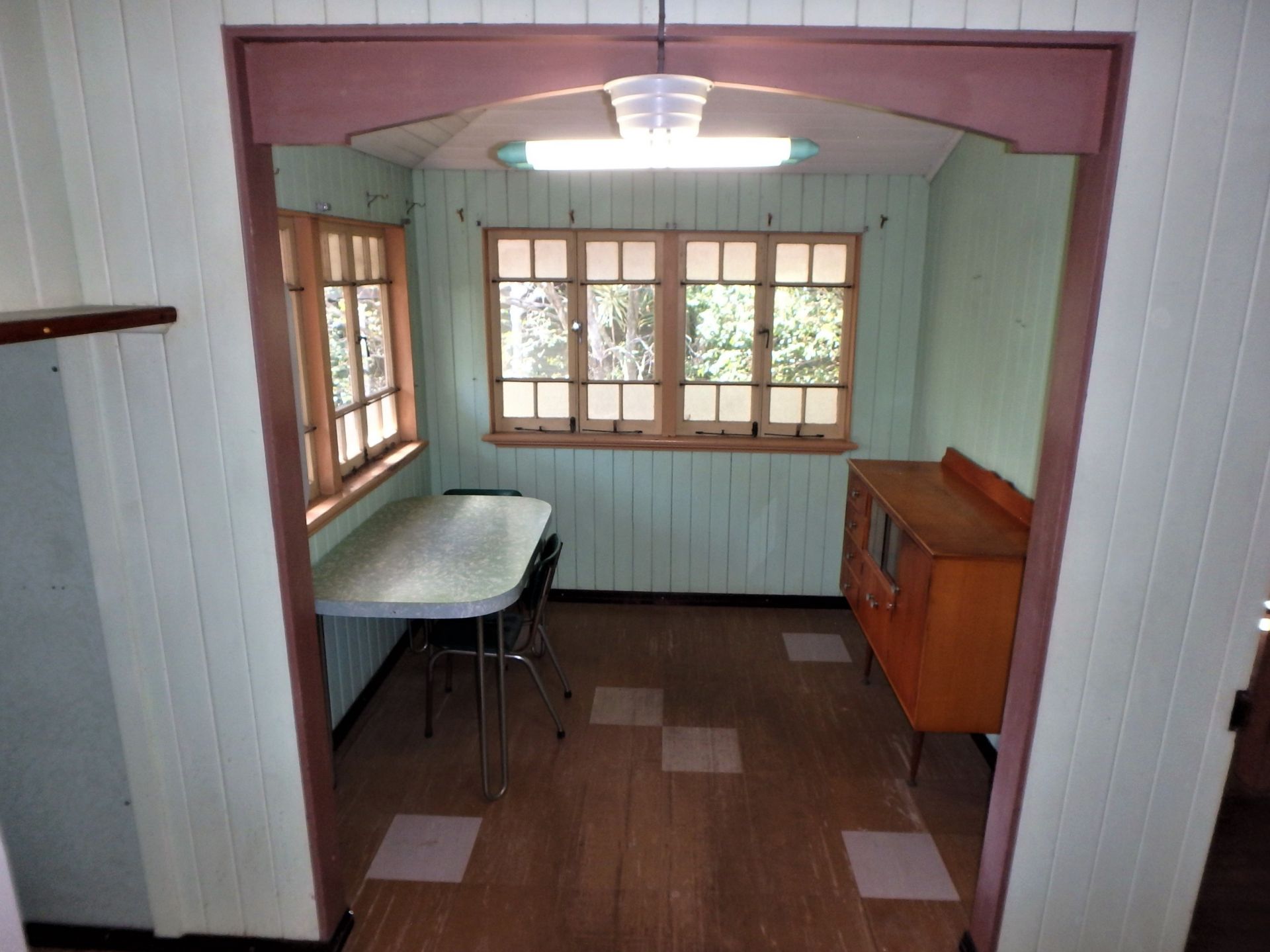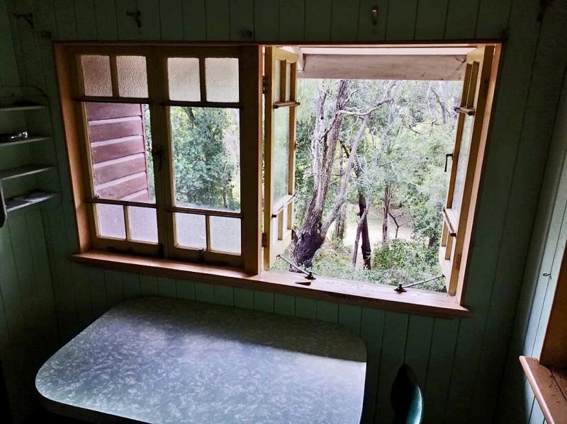 • 10.5 foot (3.2m) high VJ timber ceilings & walls, with traditional windows & fittings.