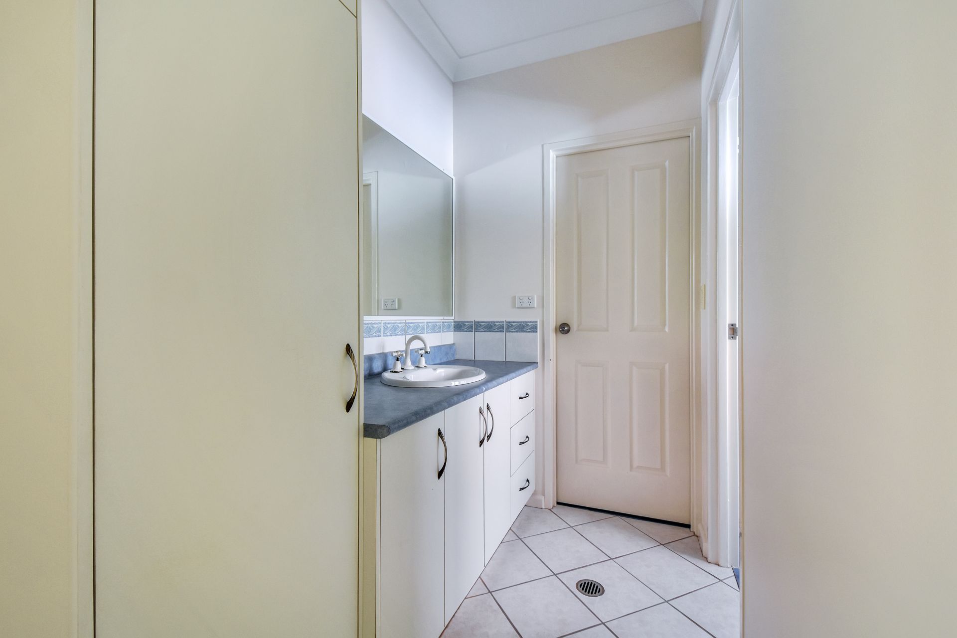 The main bathroom offers a separate toilet, shower and vanity area so that you have the convenience of sharing all 3 facilities at once as well as a large linen cupboard.