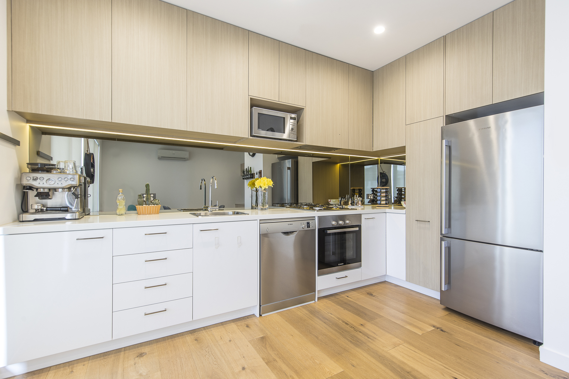 - Gas cooktop and rangehood
