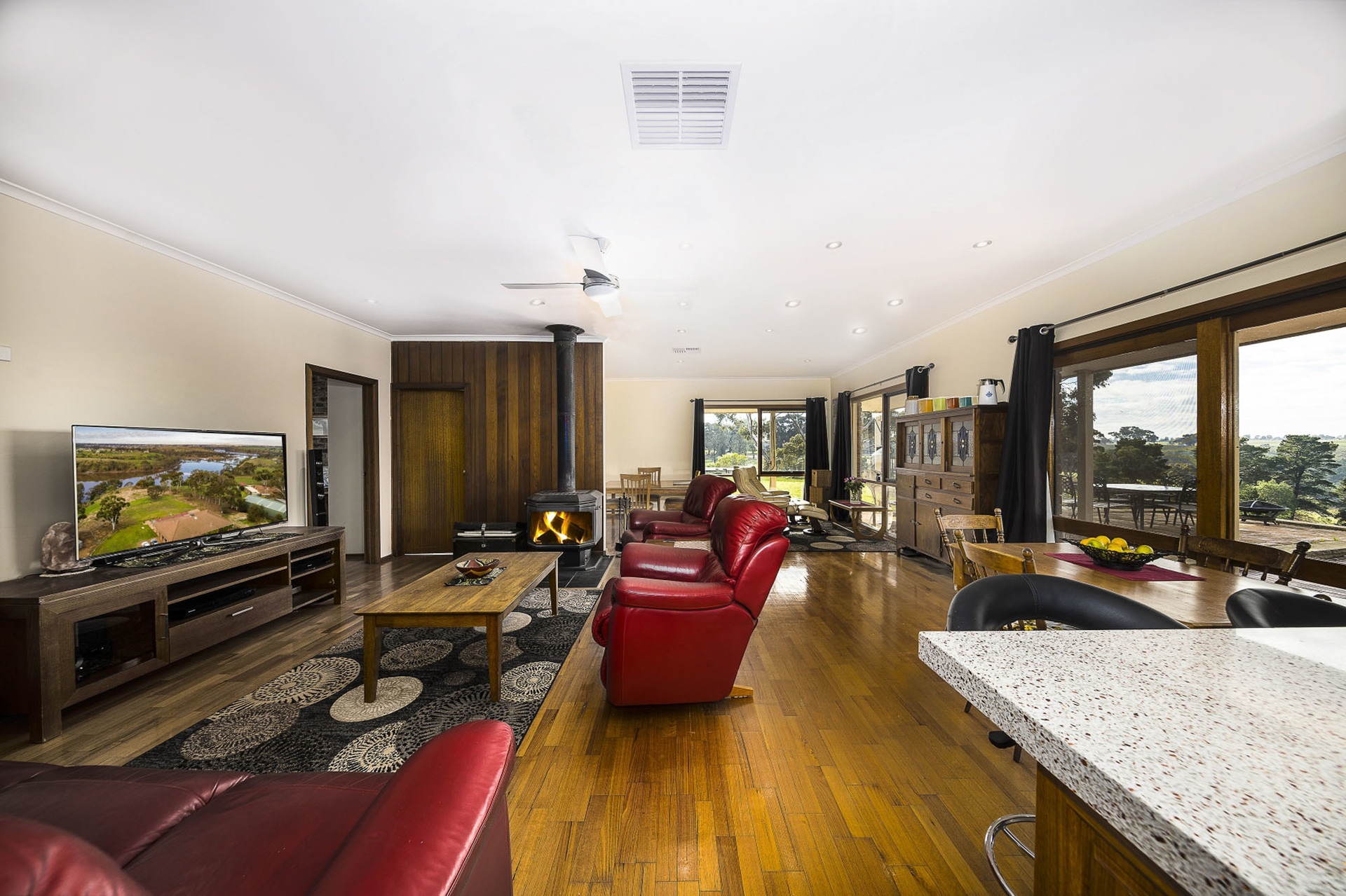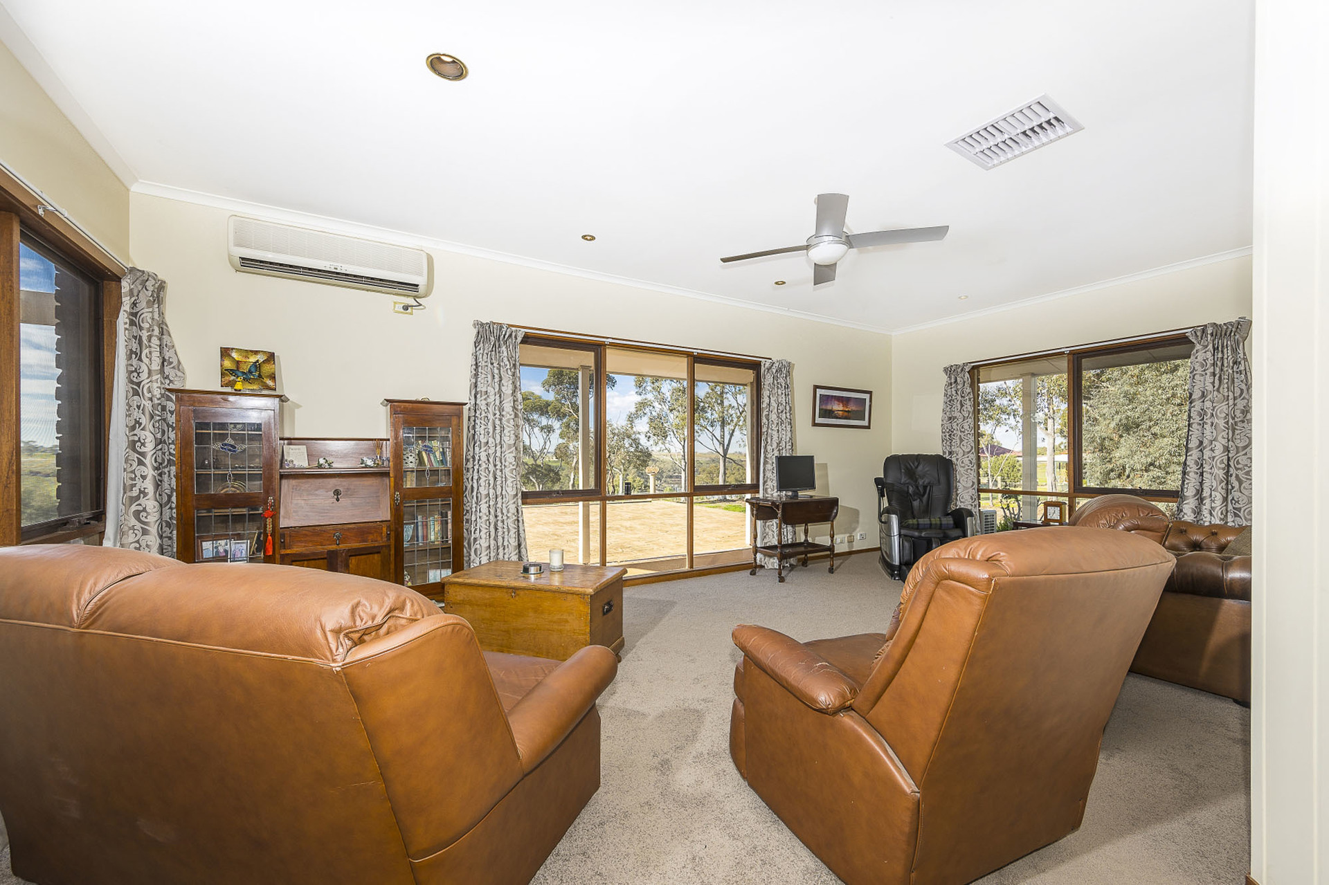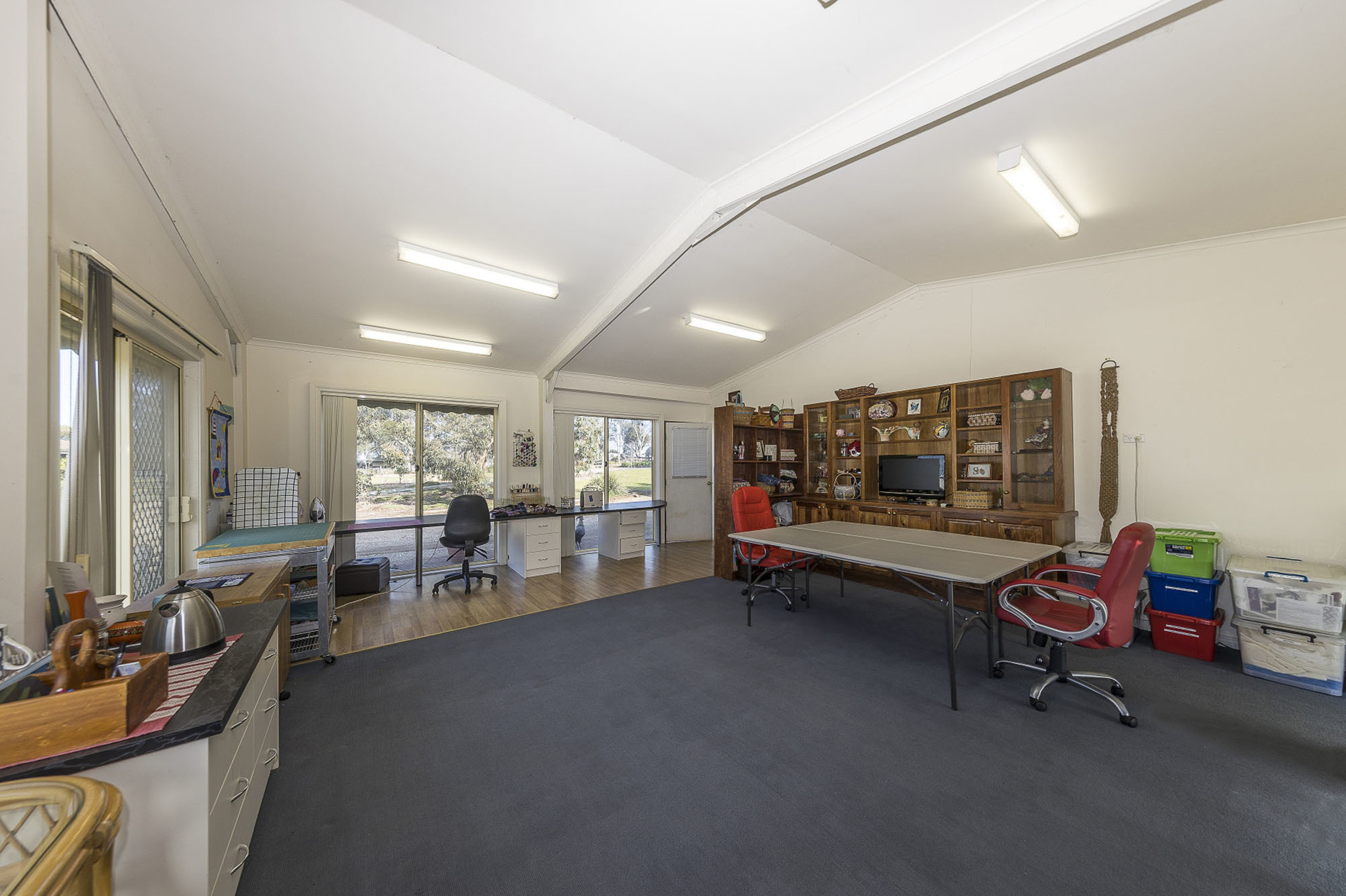 Both zones open to alfresco areas comprising the Eastern split level decked and paved outdoor area, and wide veranda surrounds. Tranquil, just the native birds for company.Recreate in the separate creative space (currently a craft studio) and multi purpose room (currently a gym). Could suit as offices too.Work or potter in the Workshop and Shedding (incl high clearance)to suit self employed trade/contractor, or just primary production and recreational pursuits. Plus another office(or is it a mancave?) complete with wood heater. Two 95000L rainwater tanks, large dam, gums and olives on 10 acres complete the picture. And for good measure, if needed, a 2.2Megalitre waterright; just go down to your own pump on the reservoir, and watch the fish jump! Pelicans or wedgetailed eagles if you are lucky. Its not all about work, canoe on your own huge dam with jetty, or maybe that motorbike for the kids? Horses are also a popular pursuit in the neighbourhood. And don't forget their education, the renowned Bacchus Marsh Grammar and all its facilities are just down the road. An ideal family home, with the lifestyle benefits of rural living, working from home whilst land banking for the future (potential future development STCA)