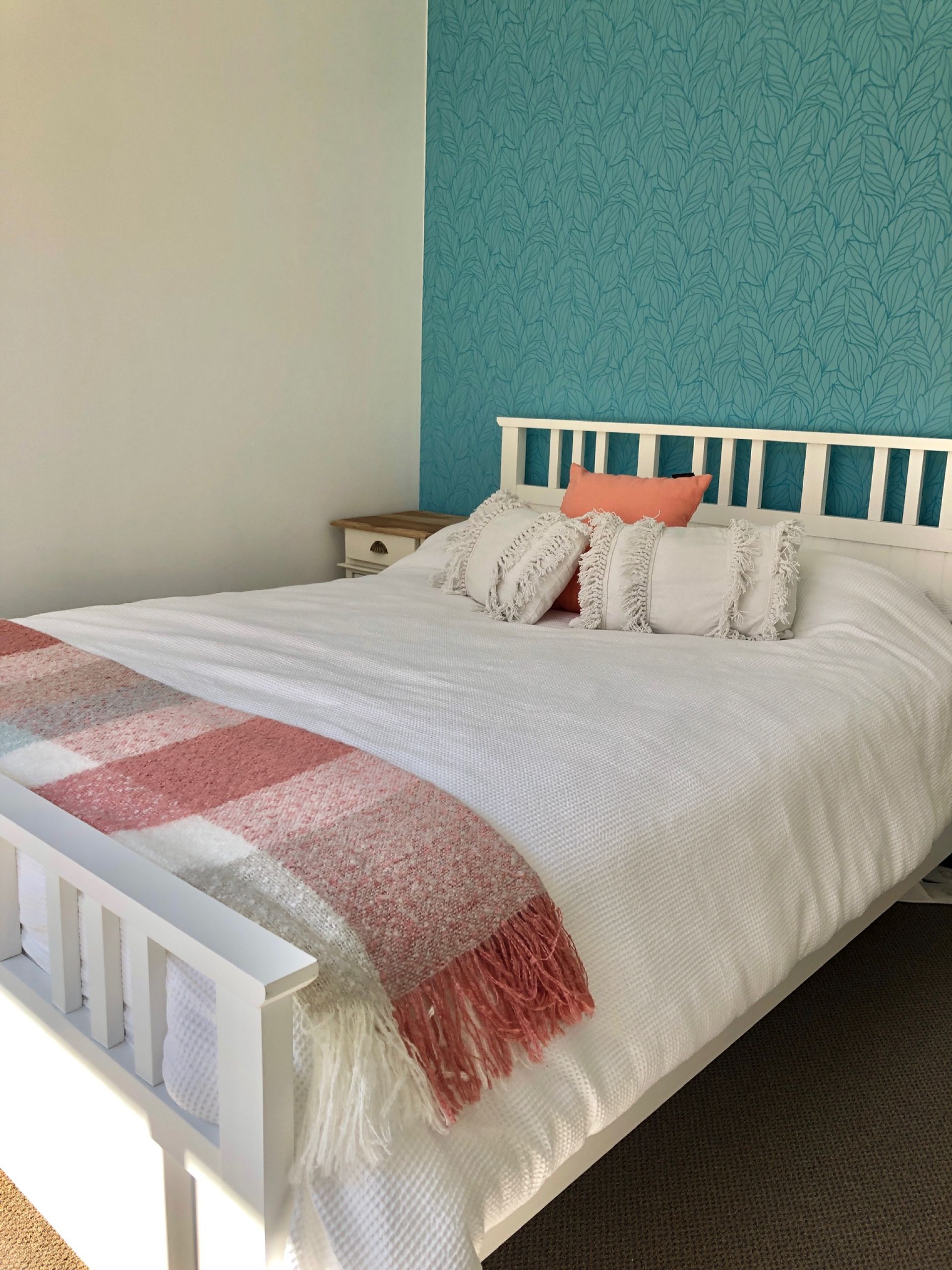 bedroom 3 ( Queen bed size ) with robe and ceiling fan.