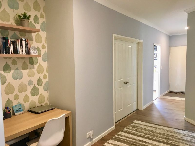Entry by double doors into a spacious hall way that includes a study nook , ideal for office use.