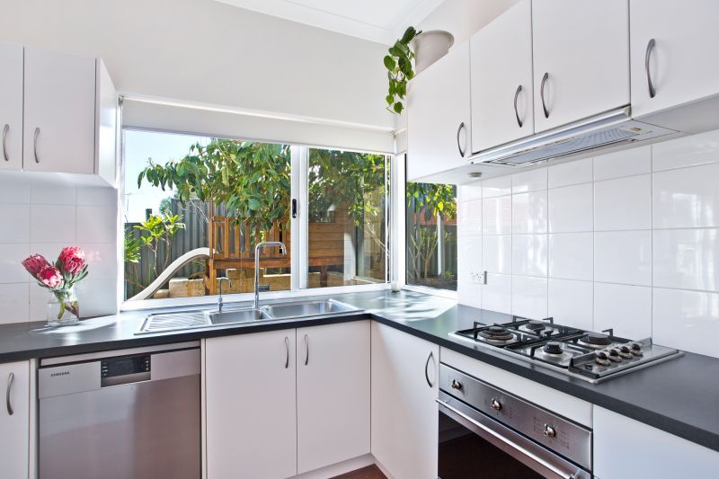 Spacious North facing living, dining and kitchen area with a private rear courtyard.