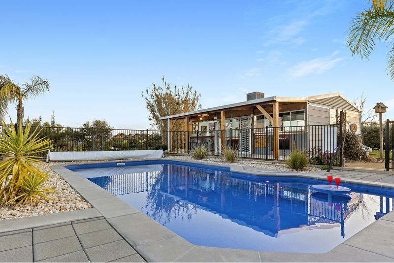Rear veranda and decking overlooks the landscaped pool area and outdoor entertainment room with its own shower and toilet.