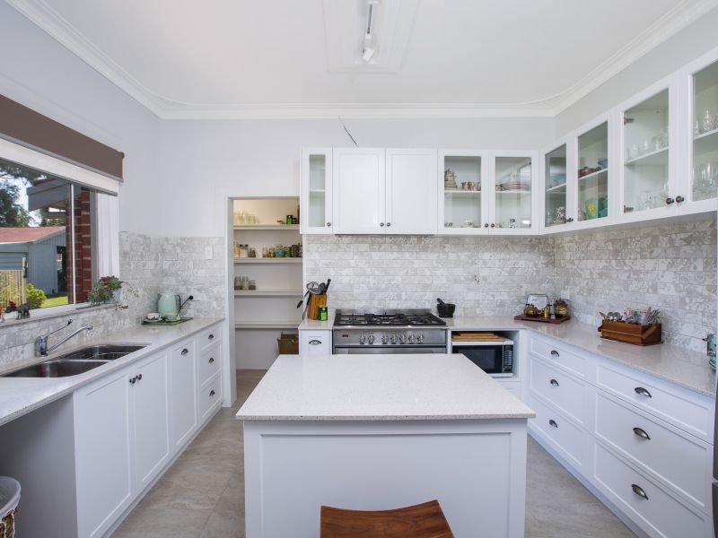 High ceilings, polished floor boards, butlers pantry, pool large block, side entrance.