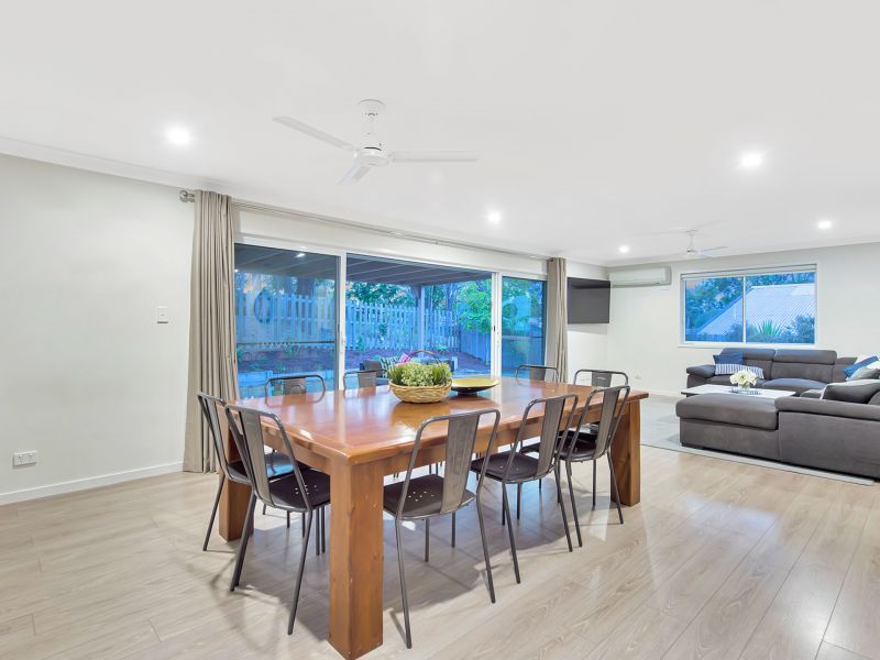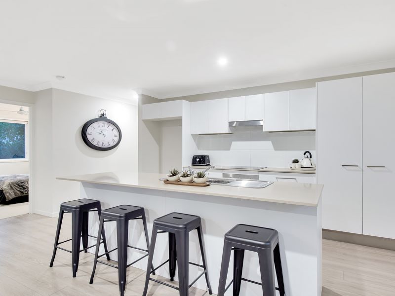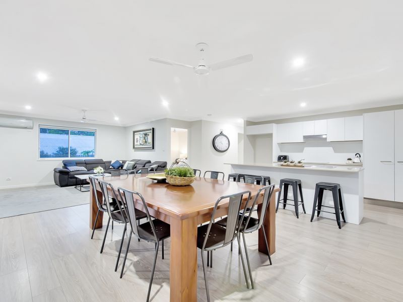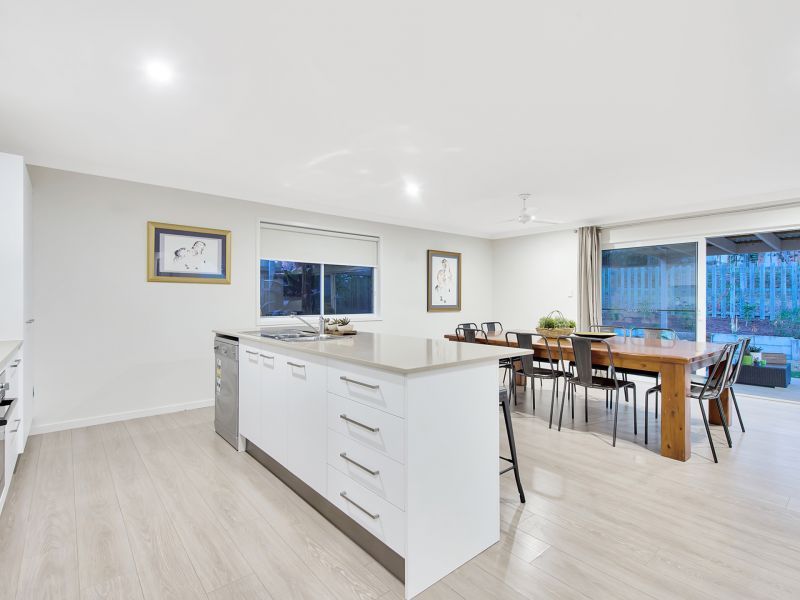 The combined kitchen, dining and lounge take advantage of natural light with large sliding doors leading to the covered outdoor entertaining area. Surrounded by established gardens providing complete privacy.