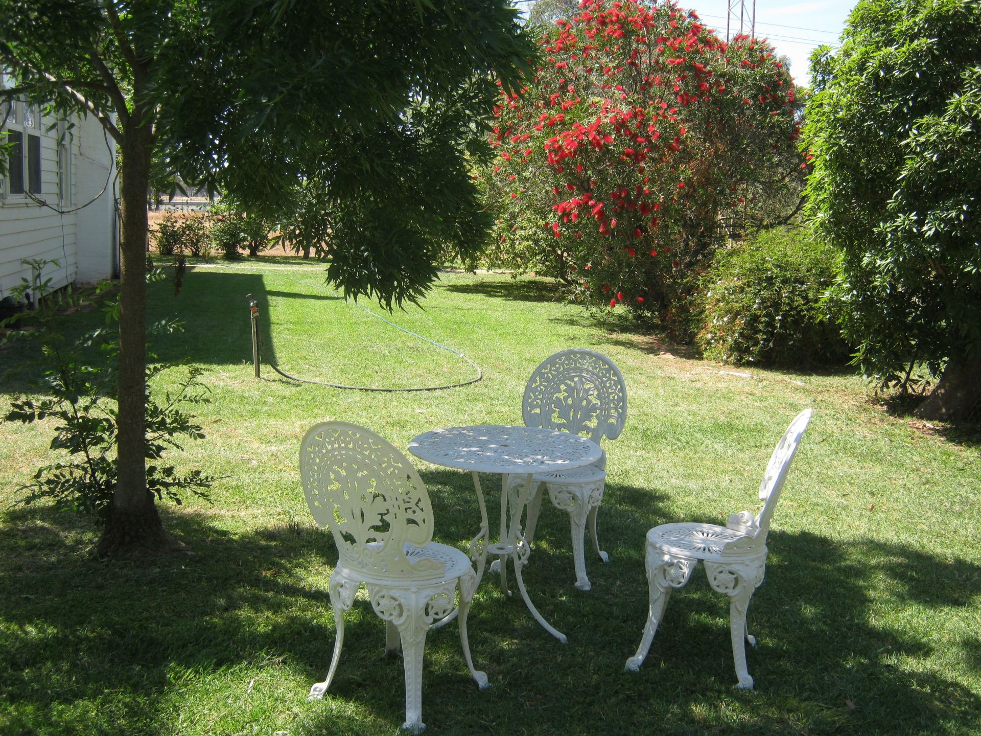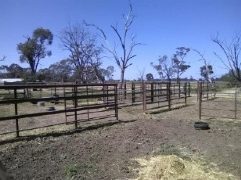 My home and property was established as a horse breeding, training, and agistment farm in 1975. It features good horse fencing, mostly with elec. (hot wiring). Working yards were designed and built for handling and breeding horses, all steel and approx 1800 high, all first class working yards. 2 crushes and vet/semen preparation room, and further excellent undercover yards, and 4 reasonable stables. The property features wide laneways to move stock, reticulated water, 2 paddocks sown down to , oats, and barley, good silos, large machinery shed, hay shed holds approx 300 large rolls, and double brick garage. Good sized dam designed for swimming horses, 620 sand track for working horses can be extended as the property is basically rectangular, and has a frontage of approx 800 metres. The house is circa 1900, featuring, renovated kitchen, bathroom with separate bath, shower, toilet, all including laundry recently renewed, there is also an external toilet, and comfortable shaded deck at the rear of the house, all lawns, gardens and lots of trees well established. My home has 3 bedrooms ( one is sometimes used as a study by my daughter), separate lounge and dinning rooms, and office. Some lovely leadlight through the house.
