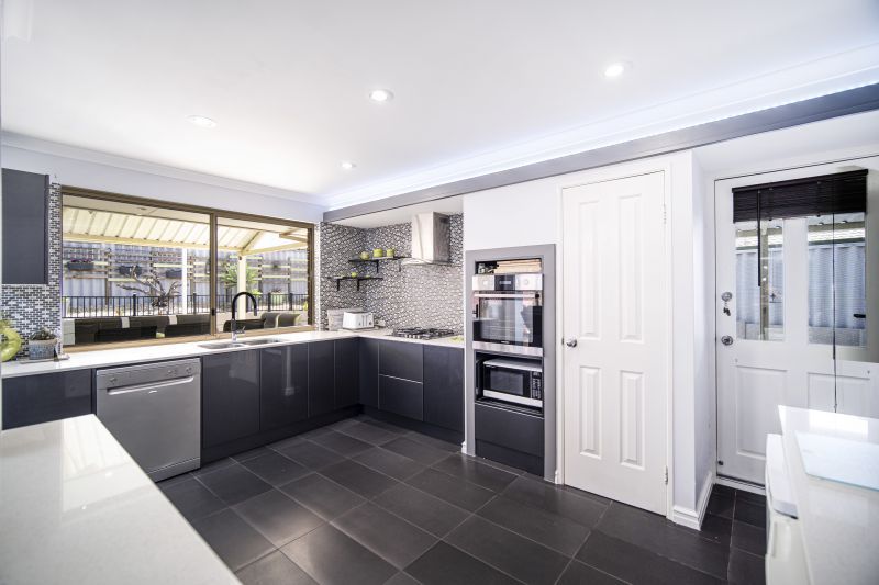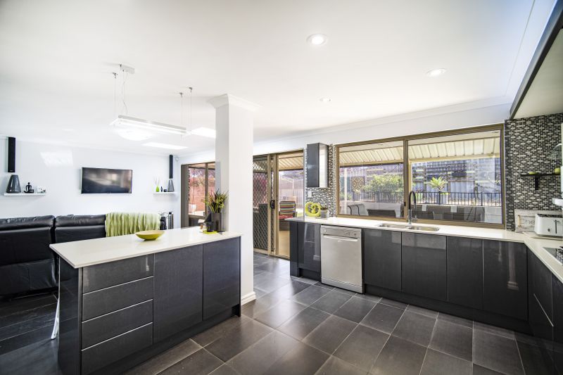 With average block sizes now being in the 300's, this home situated on a 631sqm corner block boasts a beautifully designed handle less high gloss kitchen and the home is fitted to a very high standard featuring quality fixtures and fittings throughout. Plenty of storage, stone counter tops, also included in the sale the under-bench fridge and freezer. The kitchen overlooks a good-sized family area (complete with Velux sky lights with integrated blinds and LED lights) Foxtel point, gas point and window seat with storage.