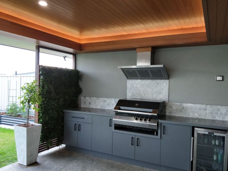 Walking to the front door, you are greeted by a cedar lined ceiling and Merbau decking that really sets the opulent style of this home. The large entrance hall leads you to a stylish open style of living. The well designed kitchen is generous sized, and includes a large island bench with a black undermount sink, matching matte black taps and pendant lighting. Stone bench tops and marble tiling are used throughout and continue into the butler's kitchen and alfresco. The kitchen has been donned with Neil Perry 900mm appliances making sure you can cater for the family or a large gathering. If entertaining is your thing, simply open up the double sliding doors and your kitchen extends out onto the luxurious alfresco that also features a cedar lined ceiling and exposed aggregate flooring, making BBQing a delight.