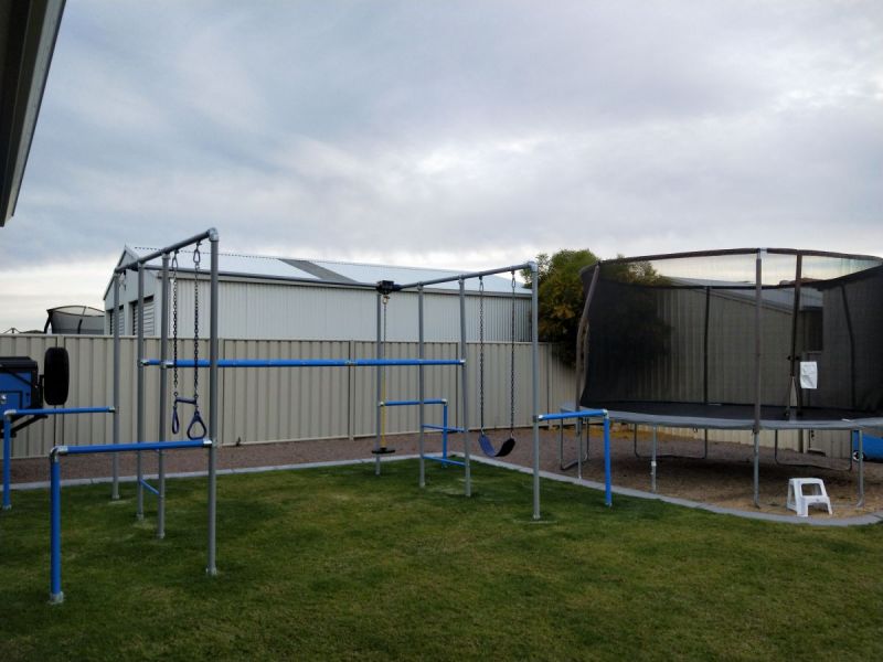 Large garage (7m x 6.5m) that fits oversized and lifted 4x4's with inbuilt 6 door storage down one side