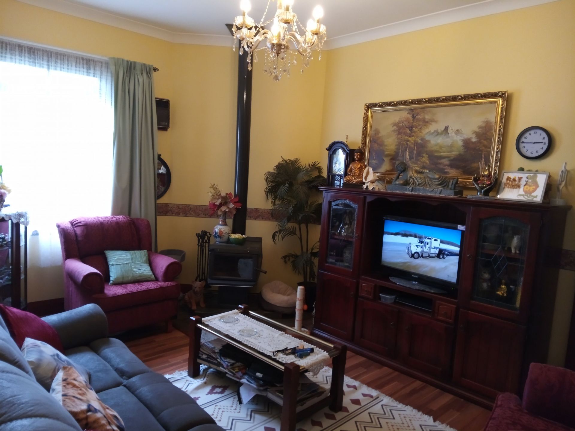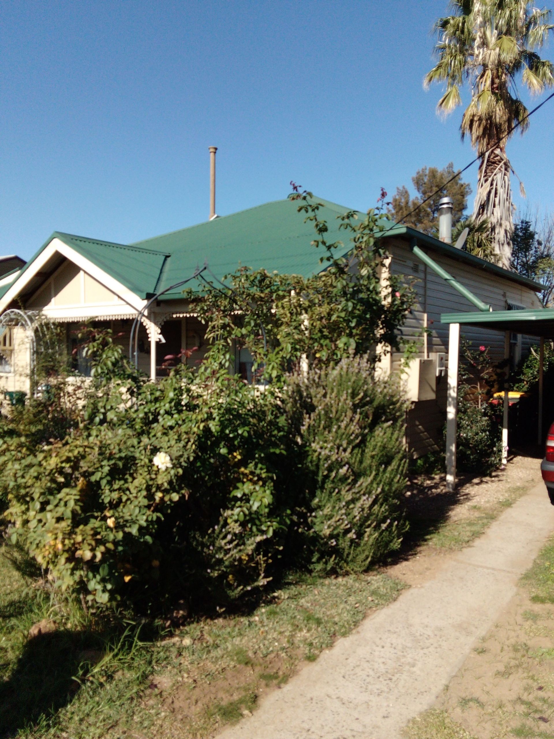 3 good sized bedrooms 1 with built ins. PLUS study or 4th bedroom with plenty of storage. floating floors.. colourbond roof.. updated bathroom. good country style kitchen.. Tiled kitchen and dining floors.carpet in 2 bedrooms.. . Floating floors in 1 bedroom, lounge room..and study, Wood heating. Established gardens.... Rear gazebo and gardens with fruit trees... Front and rear verandahs. Double garage, Garden shed.. Large bird avairy. Green shade house.. 2 hours to Canberra 4 hours to Parramatta by car. less than 1 hour to Wagga by car. Has train line at rear.. Maybe up to 6 a day including xpt twice a day each way per day.( Please note ) line closest to back fence rarely has a train on it, when there is it goes about 5 km an hour) Really good view when steam trains come through... A lot of home for the money, an inspection won't disappoint call today,( bedroom 2 is 3 metres wide has built ins,wall to door is 3.5 metres