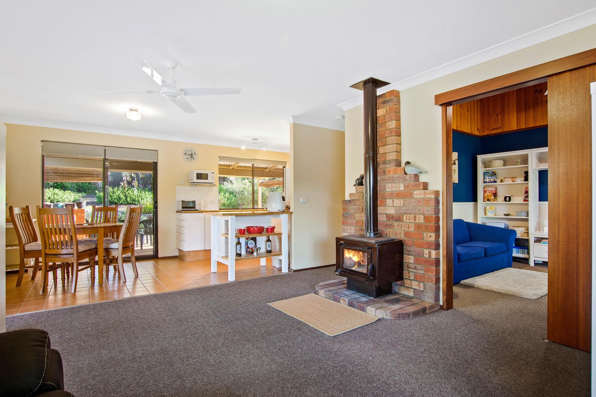 The home is complete with venetian-style and roller blinds and commercial grade carpets, a large split system air conditioner and overhead fans to the living areas and the master bedroom. There is a solid fuel wood stove in the family room, which in combination with the overhead fan warms the entire house in winter.
