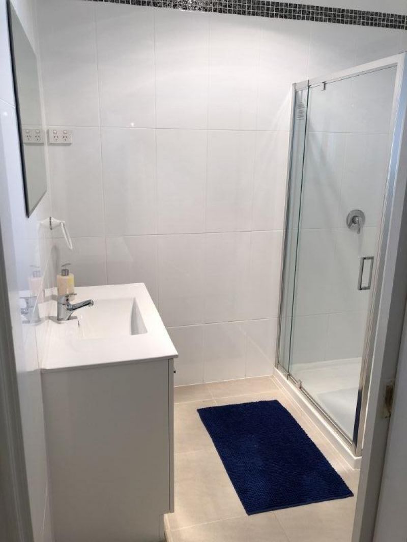 The bathroom is sharp and modern with new tiling, which adds a neat high class finish.