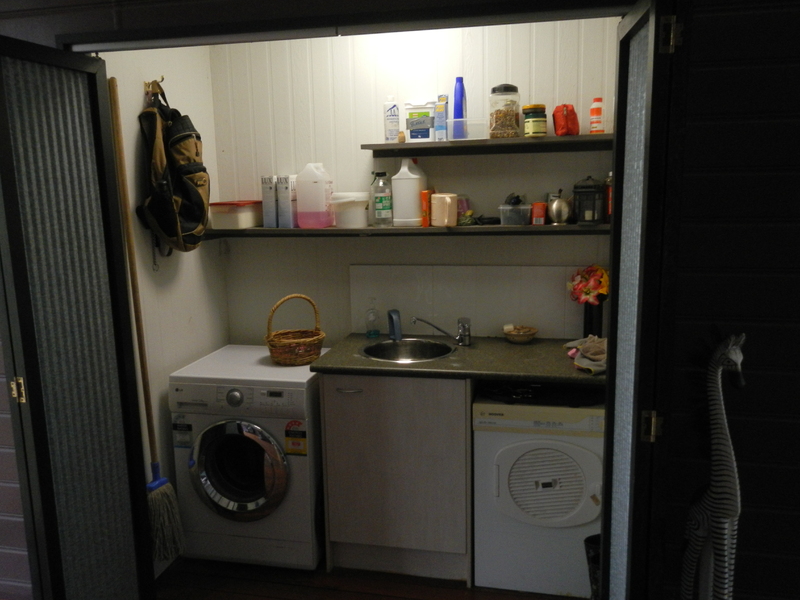 Galley kitchen (lots of drawers) with dishwasher, omega gas cooktop and electric oven, 2 door fridge, microwave space.