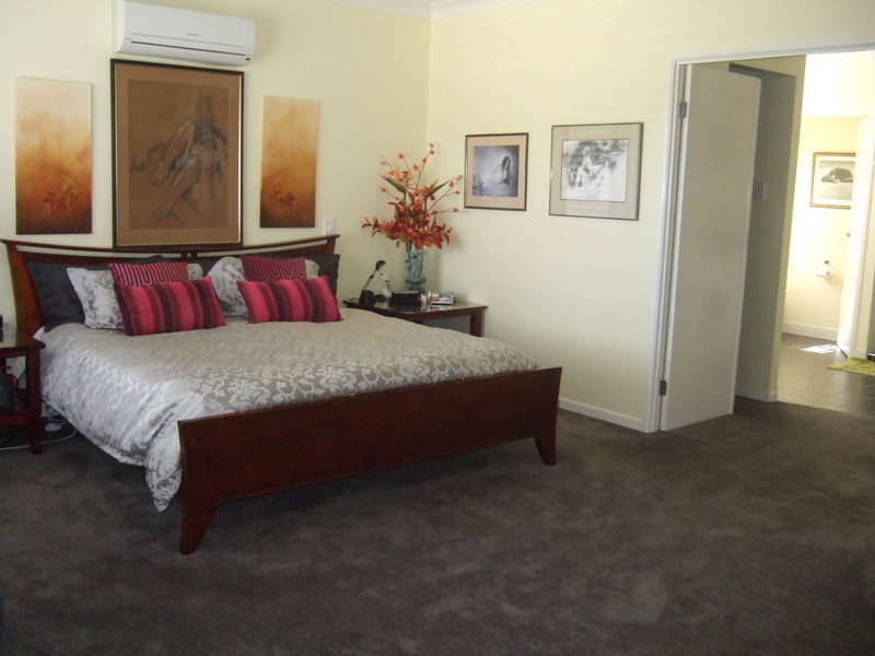 Large master bedroom suite comprising kingsize bed space, parents' retreat., built-in bookcases. fully fitted "His and Hers" dressing rooms, bath, shower and separate toilet. Heated towel rails, double basins and ceiling heater/exhaust.