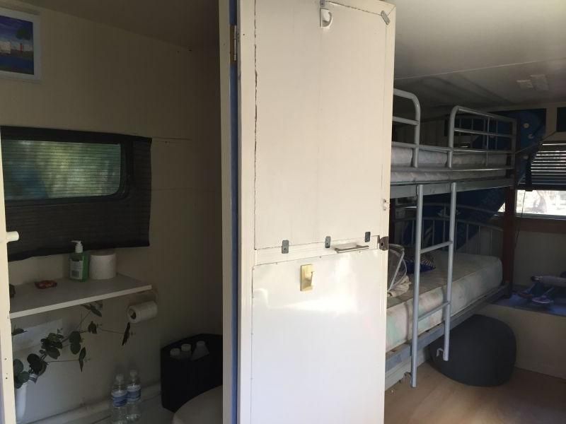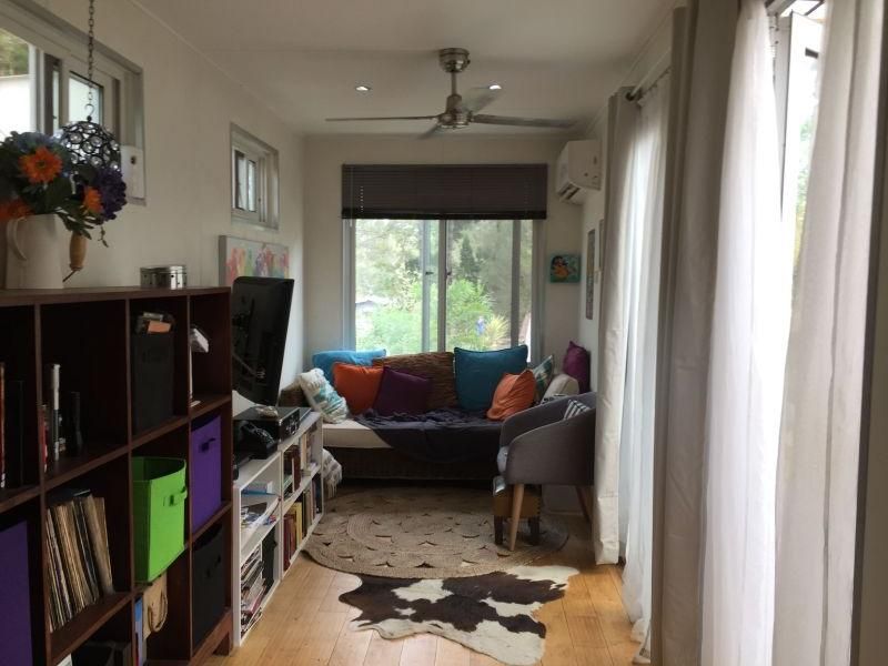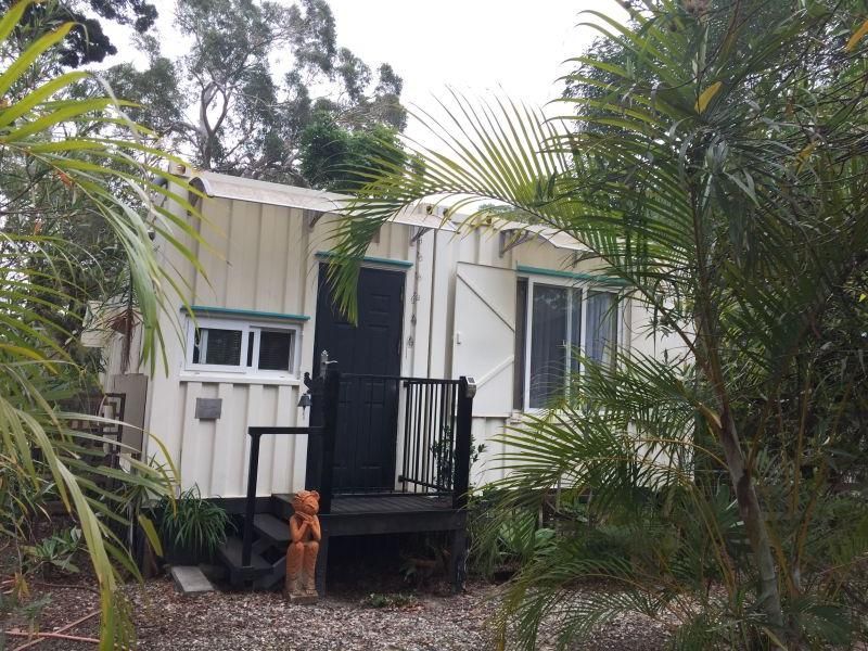 This home is a small manufactured container home on a good block of land, fully fenced (back double gates) with low maintenance gardens and overlooking bush land. It has council certification as a 2 bedroom. Plenty of room to add on if you wish. Very low maintenance home; no gutters, no termite problems not much time spent cleaning! Shutters on most of the double glazed windows and air conditioning in the lounge. Fully insulated with fans in lounge and bedroom. Flow through breezes. Dishwasher in kitchen. Walk in robe and Bifold doors to good sized deck.