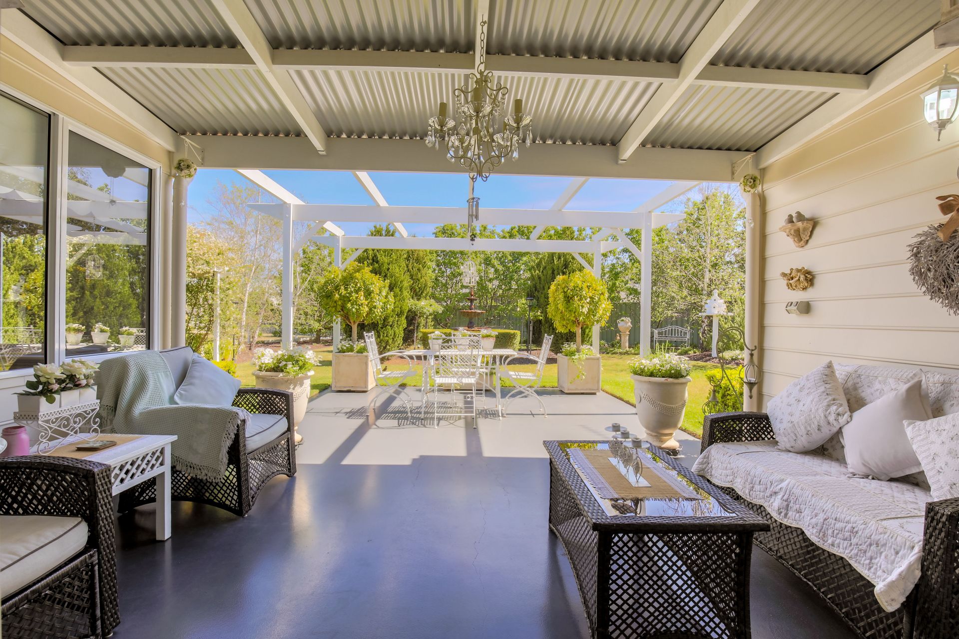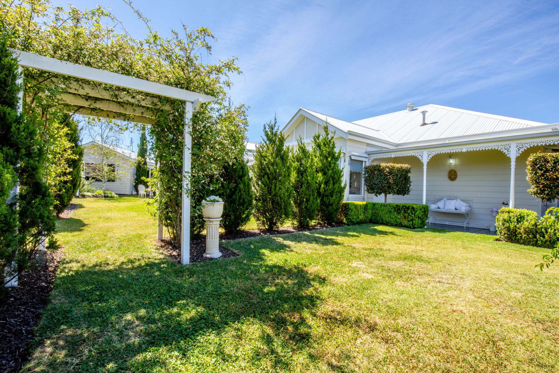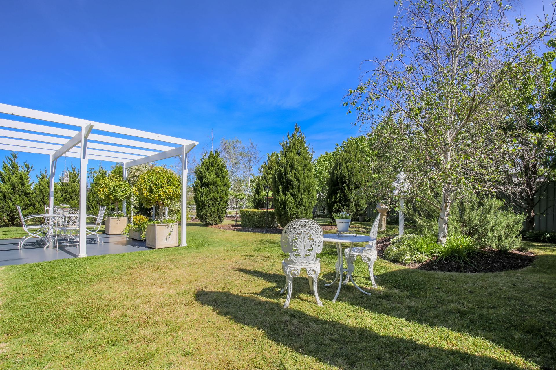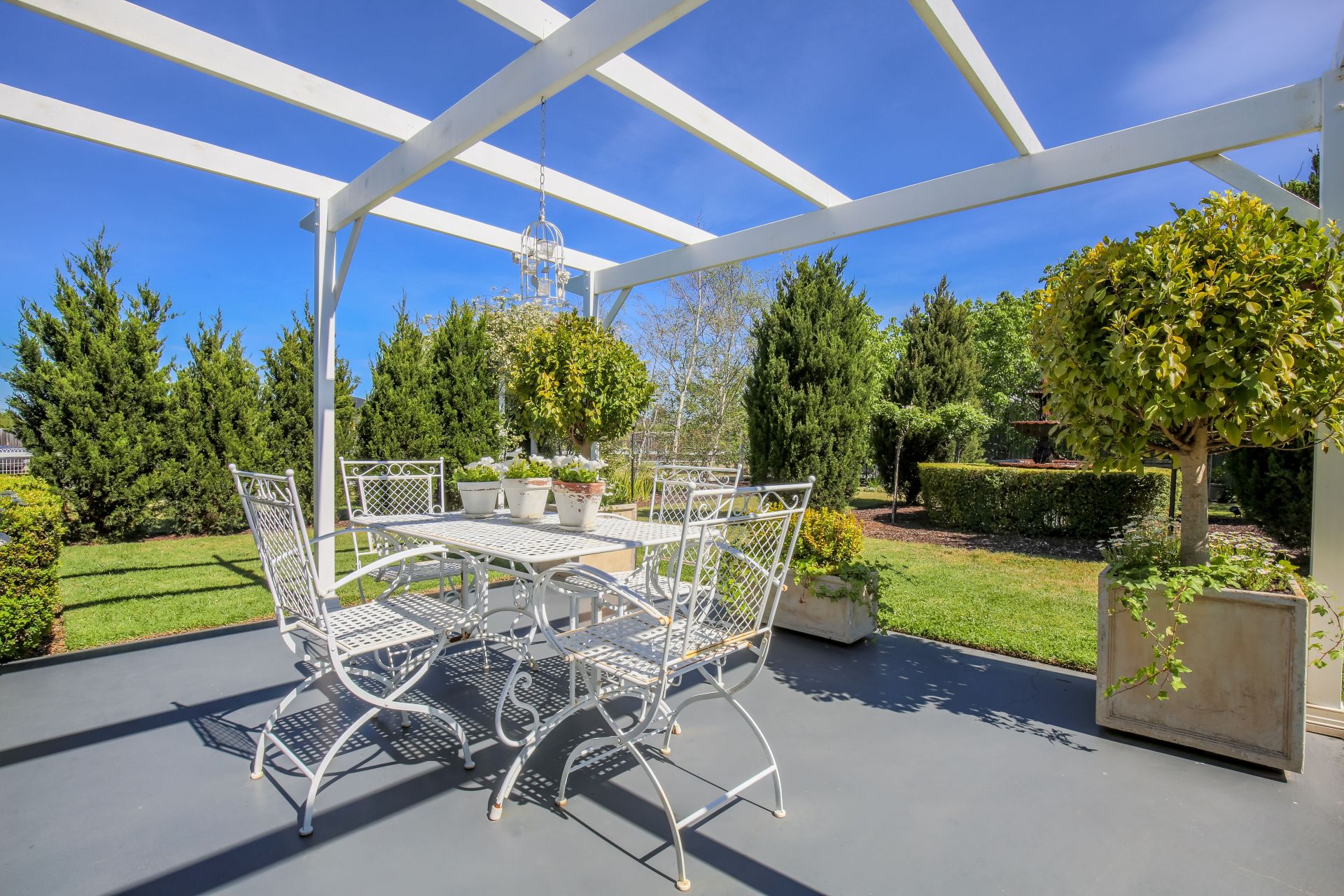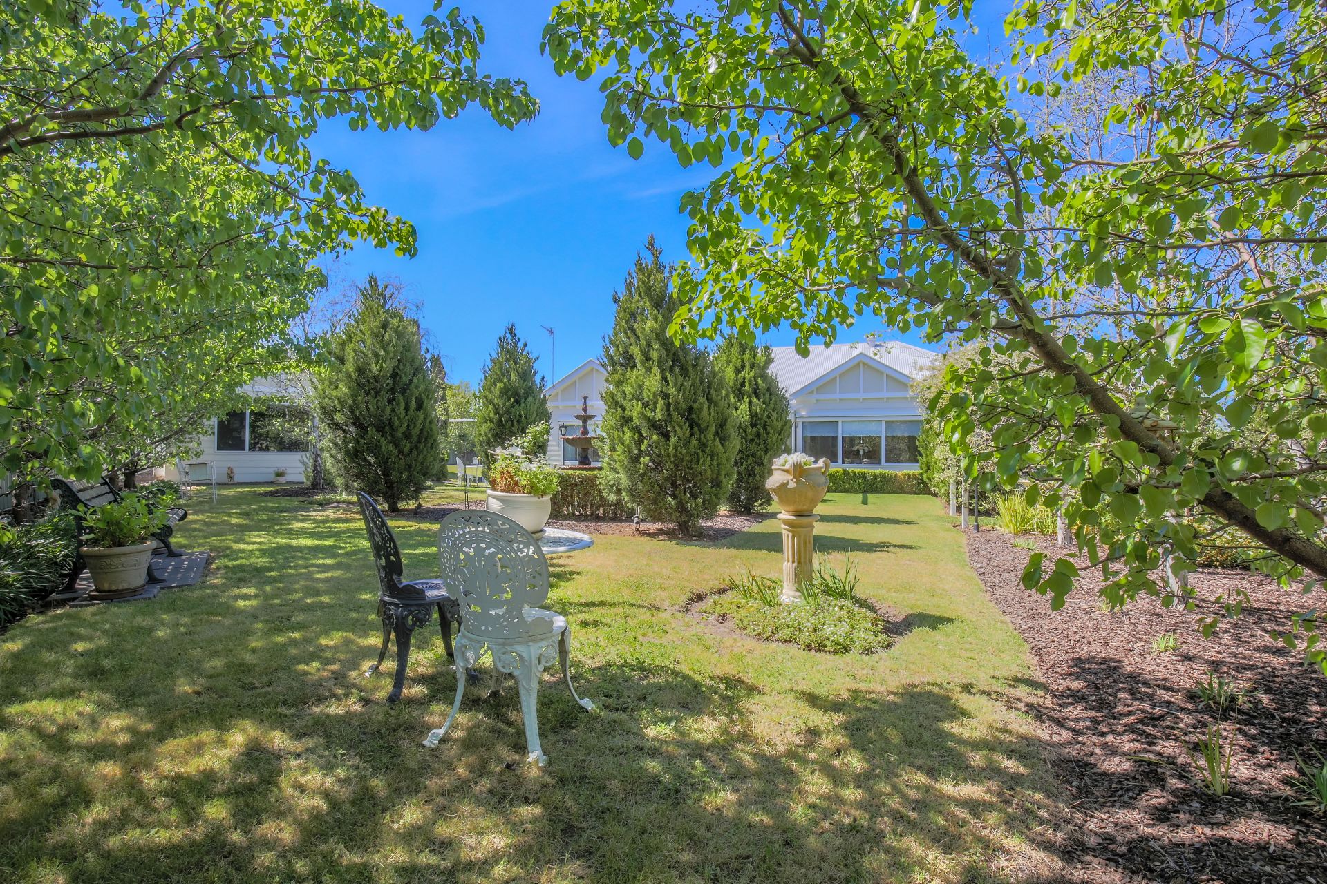 Well established and maintained gardens including an ornate 3 tier wrought iron fountain.