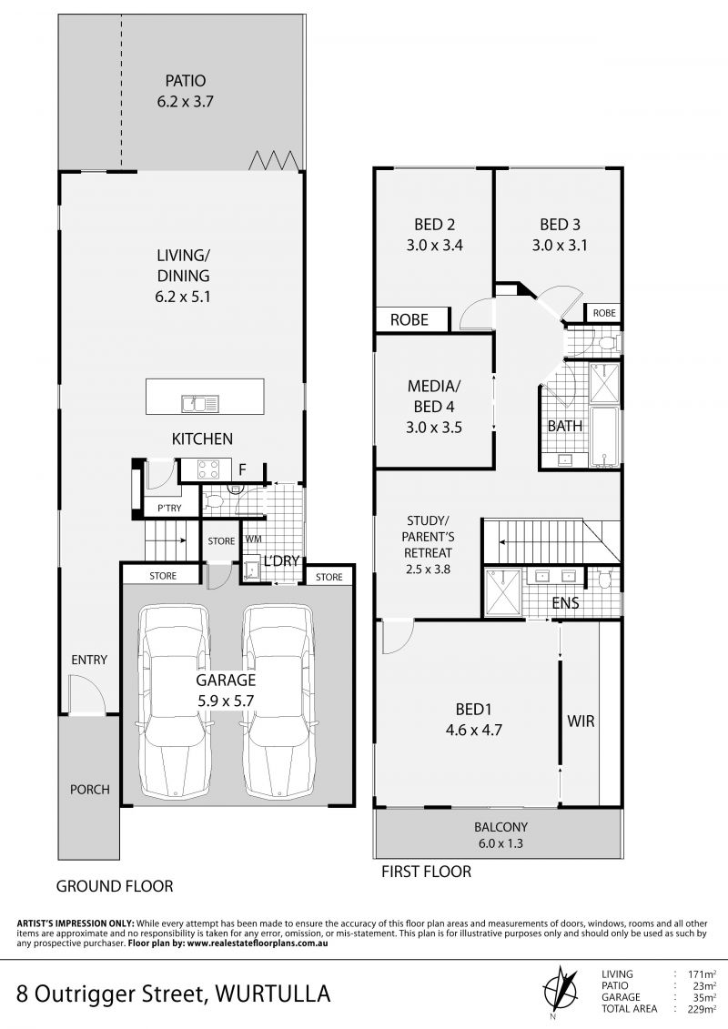 Superior Main bedroom has full width walk-in robe, double basins in ensuite. Built-in robes to other bedrooms. Media room could be 4th bedroom if desired.