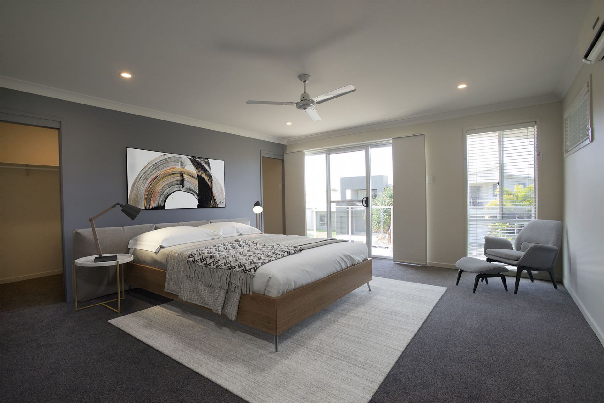Split systems air-conditioning and ceiling fans for heating and cooling.