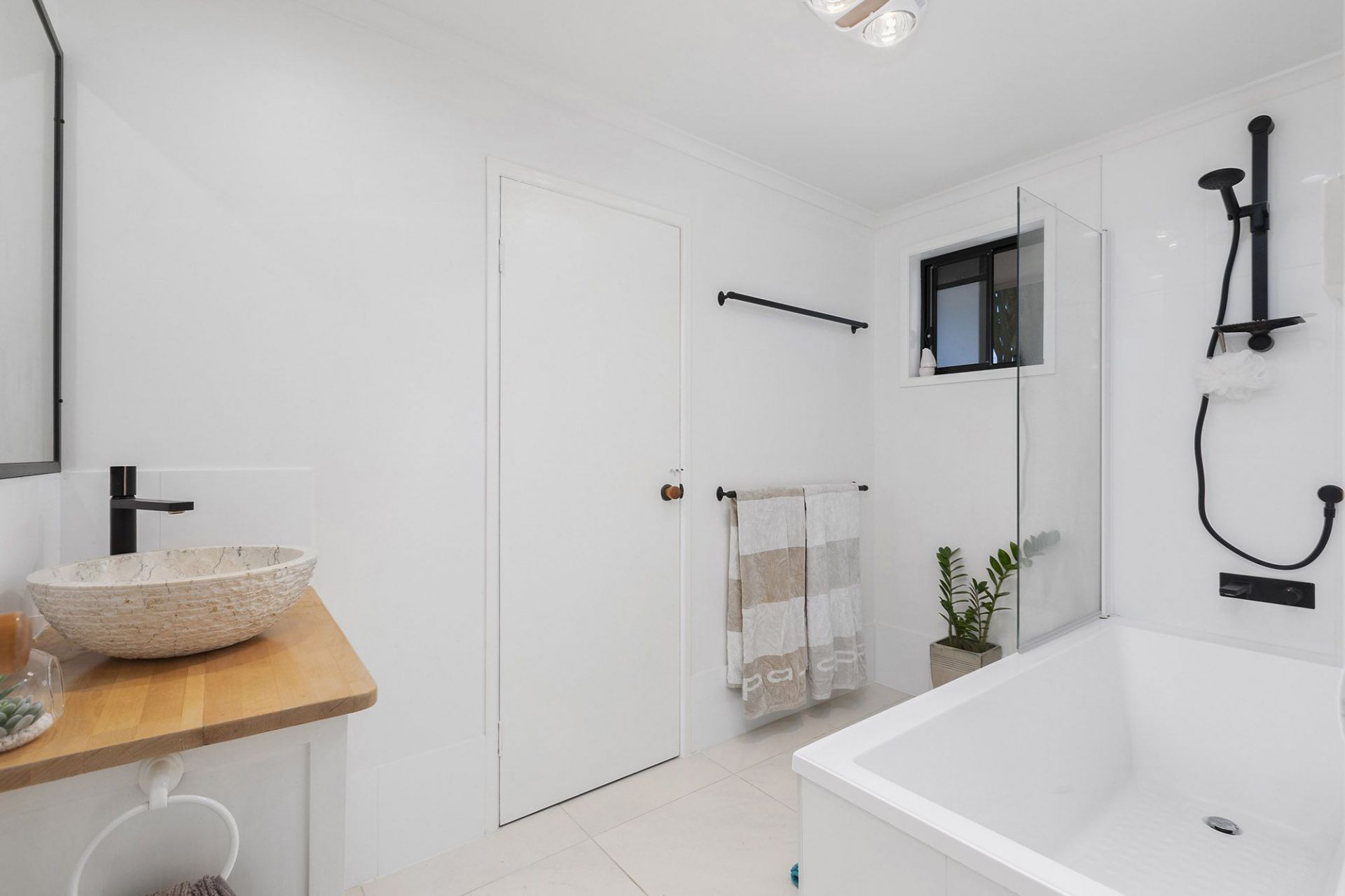 • A nice modern kitchen with 2 pac doors and Blum touch opening, two pull out pantries and a large shelved pantry. Gas cooktop and electric oven, extractor, Novelli black glass / stainless twin sink with Gohe spray mixer, lots of powerpoints and a large open benchtop for easy cooking.