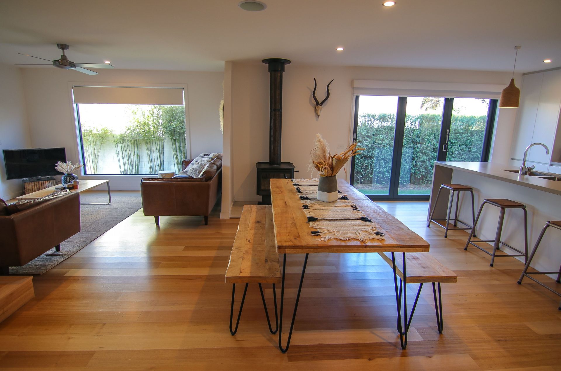 Internally, the dwelling consists of 4 Bedrooms (each with BIR's), 2 bathrooms, Main Living area (including Kitchen and Dining), Lounge room, Laundry and Study. The Lounge and Study have the ability to be isolated by way of double cavity sliding doors, offering extra bedrooms if needed. Flooring consists of polished Tasmanian Oak Hardwood throughout to the main areas with quality carpet to Bedrooms, WIR and lounge. Bathrooms, Laundry and WC include large format Italian tiles, with Ensuite and Bathroom featuring floor to ceiling tiles. With double glazed windows throughout, heating is provided by way of a wood heater to the main living area, Gas fire heater to the Lounge room and a split system to the main living area also. Kitchen and Laundry both include stone benches with waterfall ends to kitchen, with a large stainless steel freestanding oven and cooktop. All bedrooms are provided with TV antenna points.