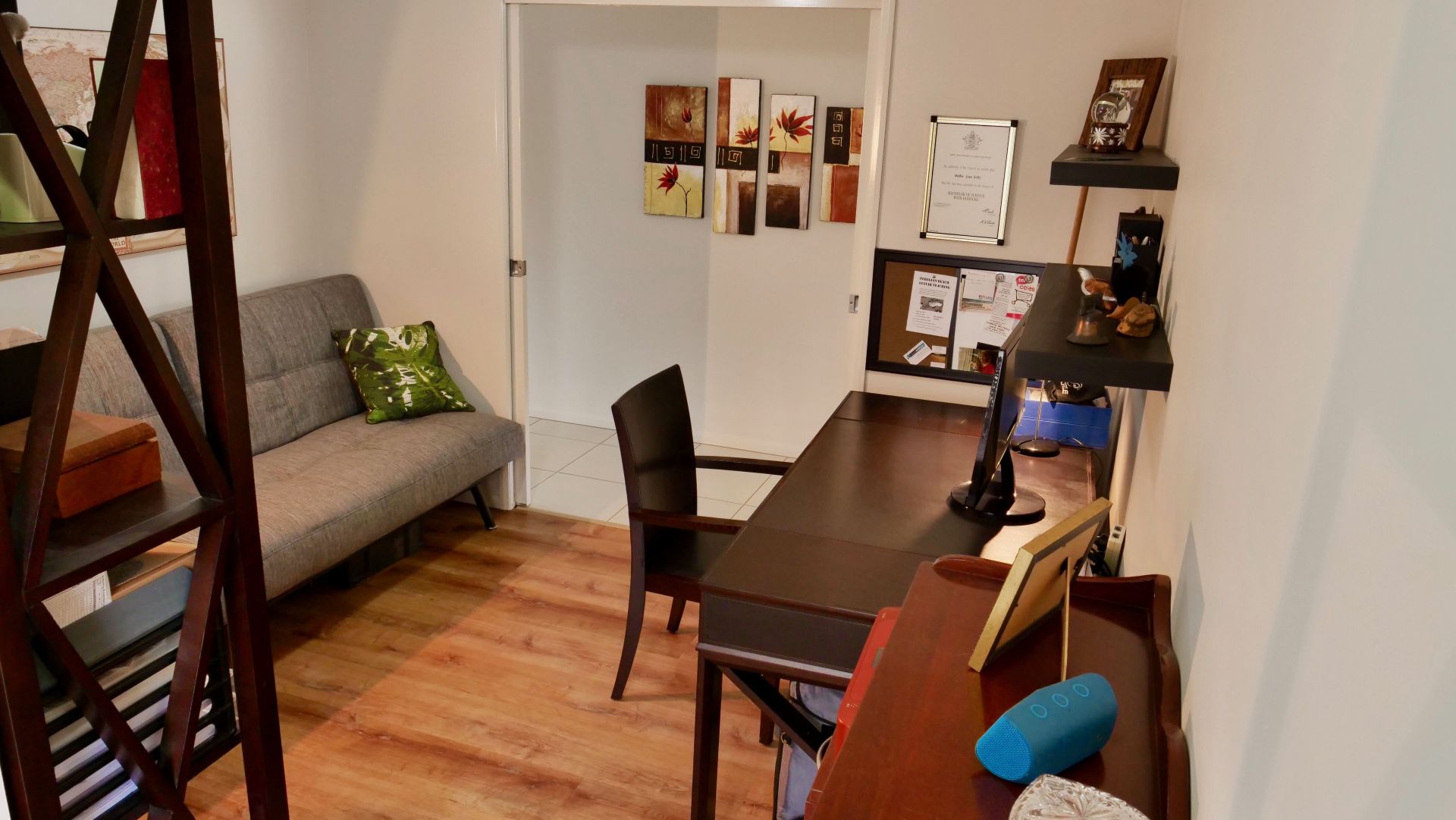 A 5000l water tank helps provide water for the landscaped, low maintenance yard and underground irrigation has been installed to keep it all green. A lawn locker out the back provides storage for the mower and tools. The house is Smart Wired.