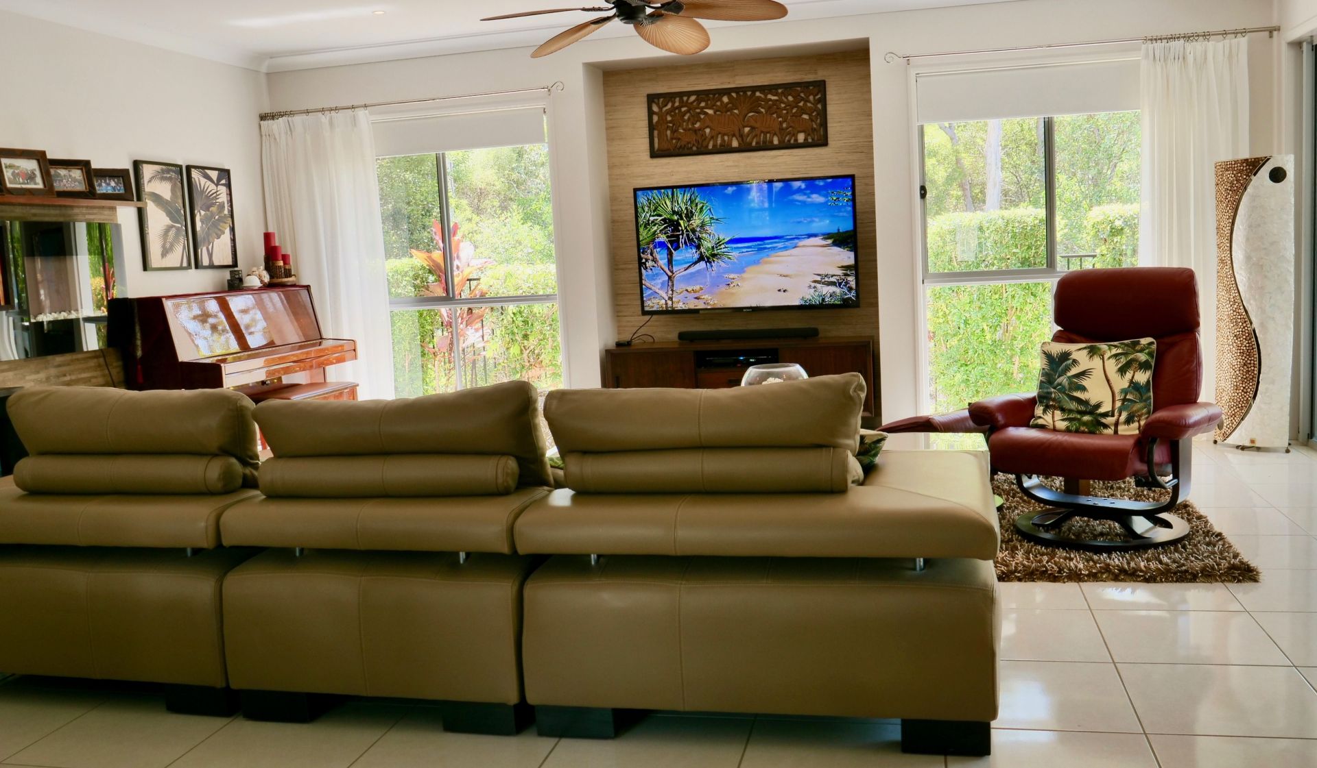 Living here you will feel like you are on holiday every day. Situated at the end of a cul-de-sac in arguably one of the best streets in Peregian Springs, this beautiful home is adjacent to a conservation zone and has a great outlook from the living, kitchen, master bedroom(even the shower) and one of two outdoor areas.