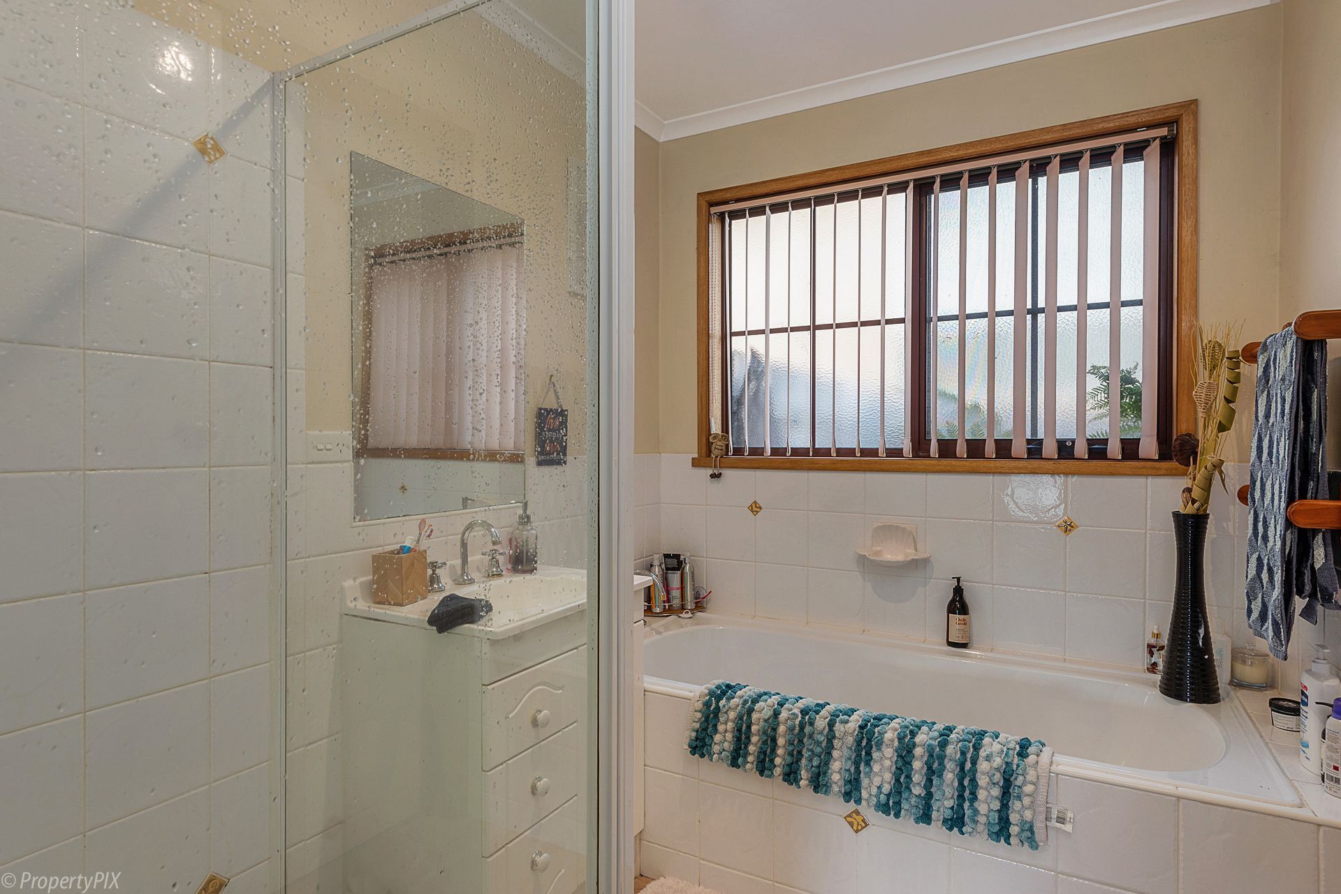 A few stairs up leads to two double bedrooms with large built-ins, a two way bathroom with separate entrance form the master bedroom and a separate toilet. Uncommonly, the bathroom has both a bath and separate shower. There are ample storage cupboards within the villa.