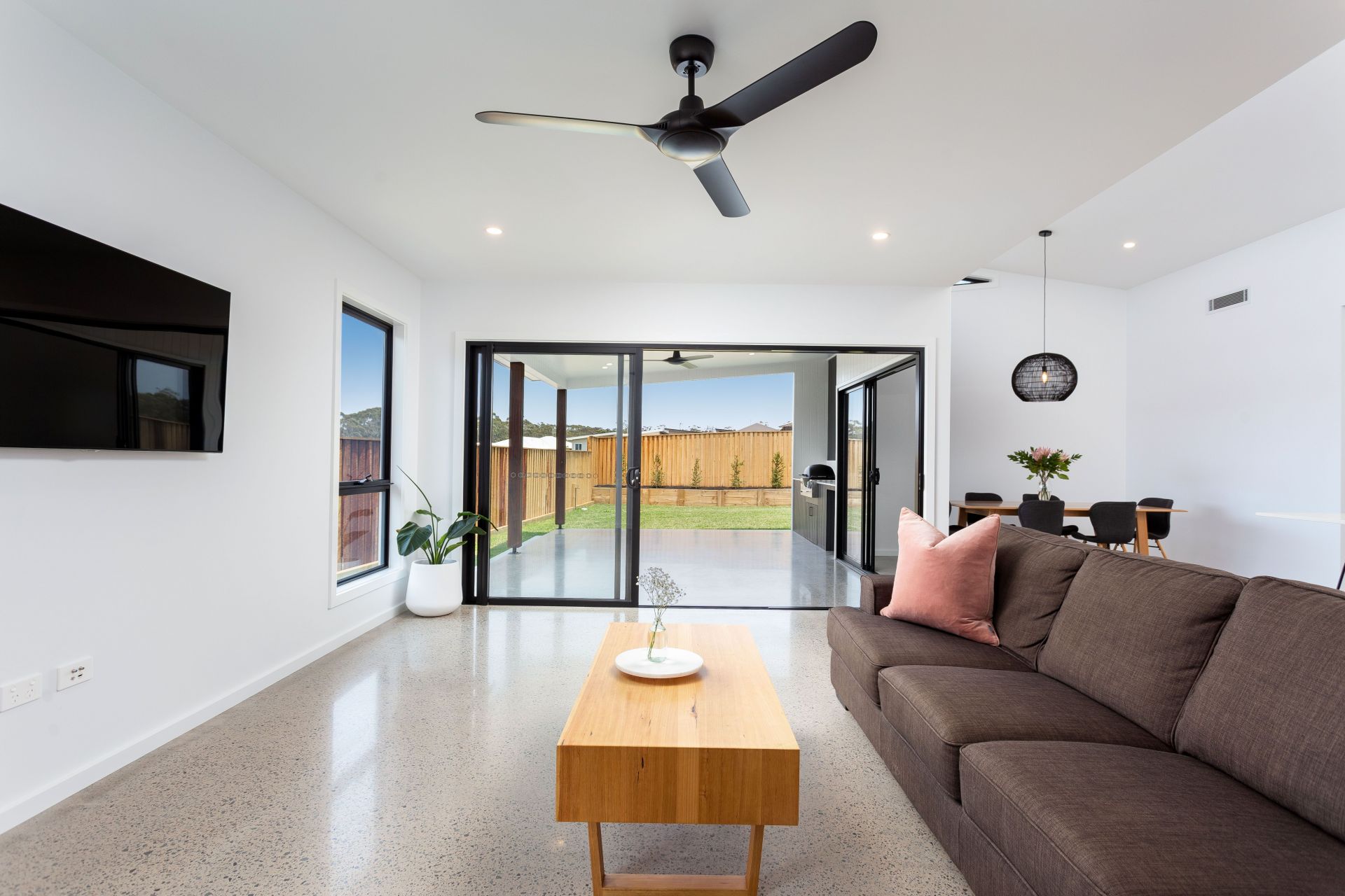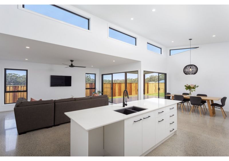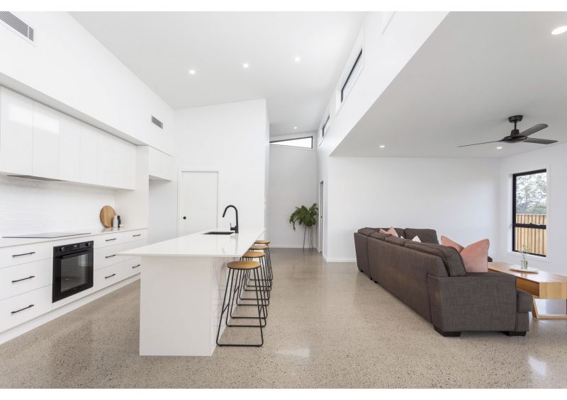 Flat level home throughout with easy care polished concrete floors that will last a lifetime. The home is insulated above Australian standards with high performance insulation and inclusion of e-glazing smart glass windows adds massive heating and cooling benefits, which will comfortably regulate the internal temperature all year round. With multiple seperate living areas, the media room is another space to be entertained by a movie or simply get away and relax.
