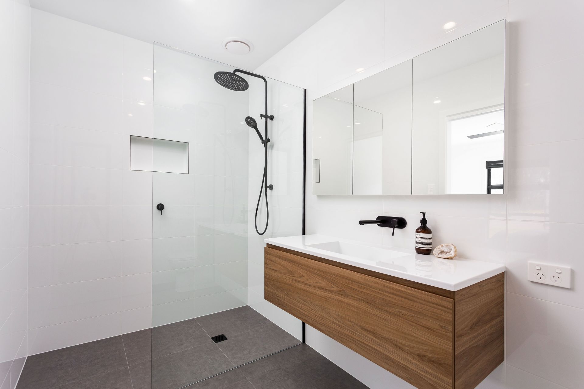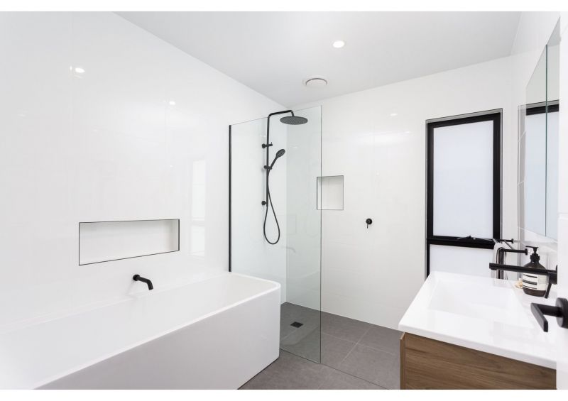 - Floor to ceiling tiles in bathroom/ensuite with phoenix tapware, dual rail shower heads, freestanding bath and mirror cabinets for extra storage.