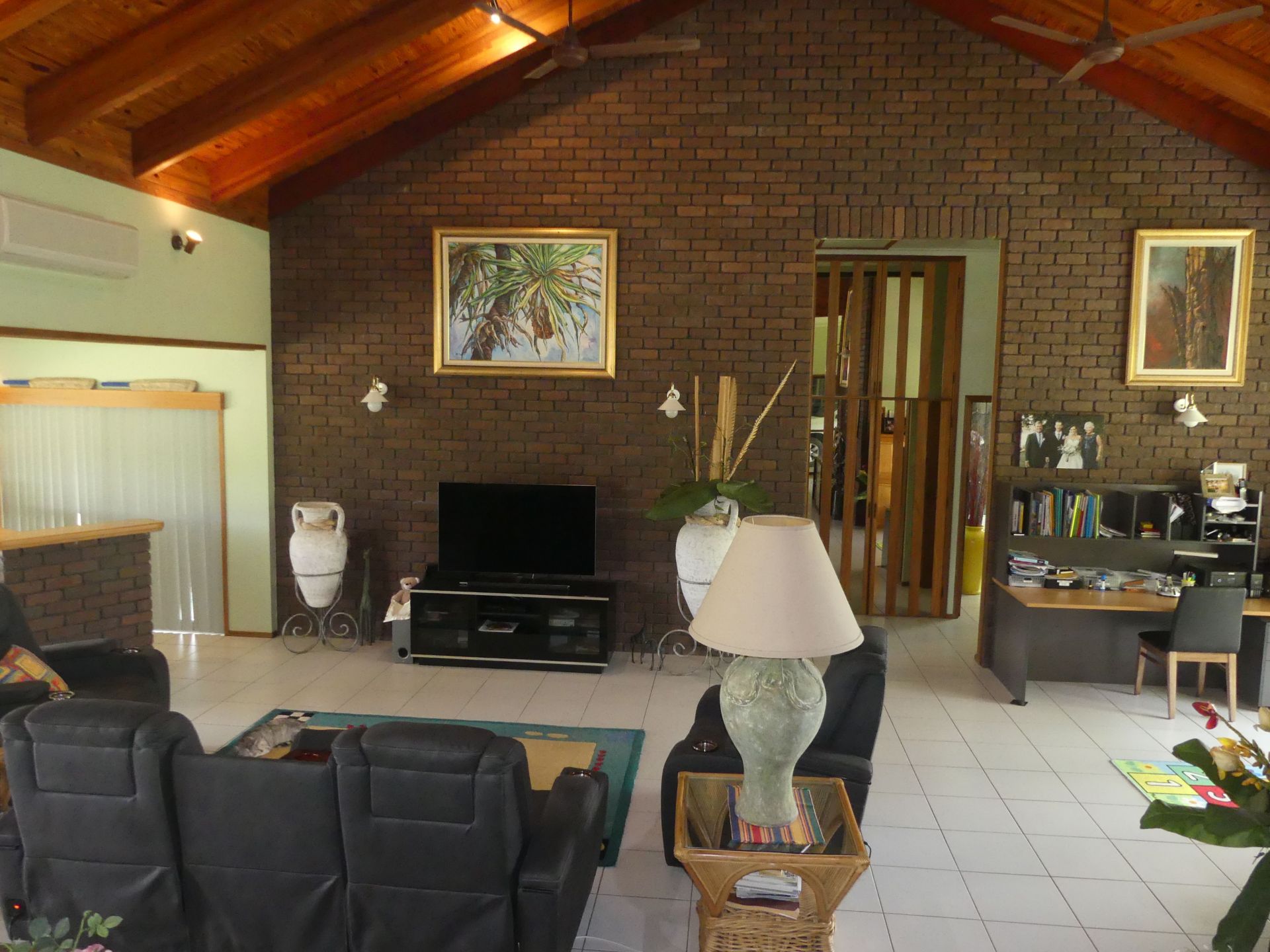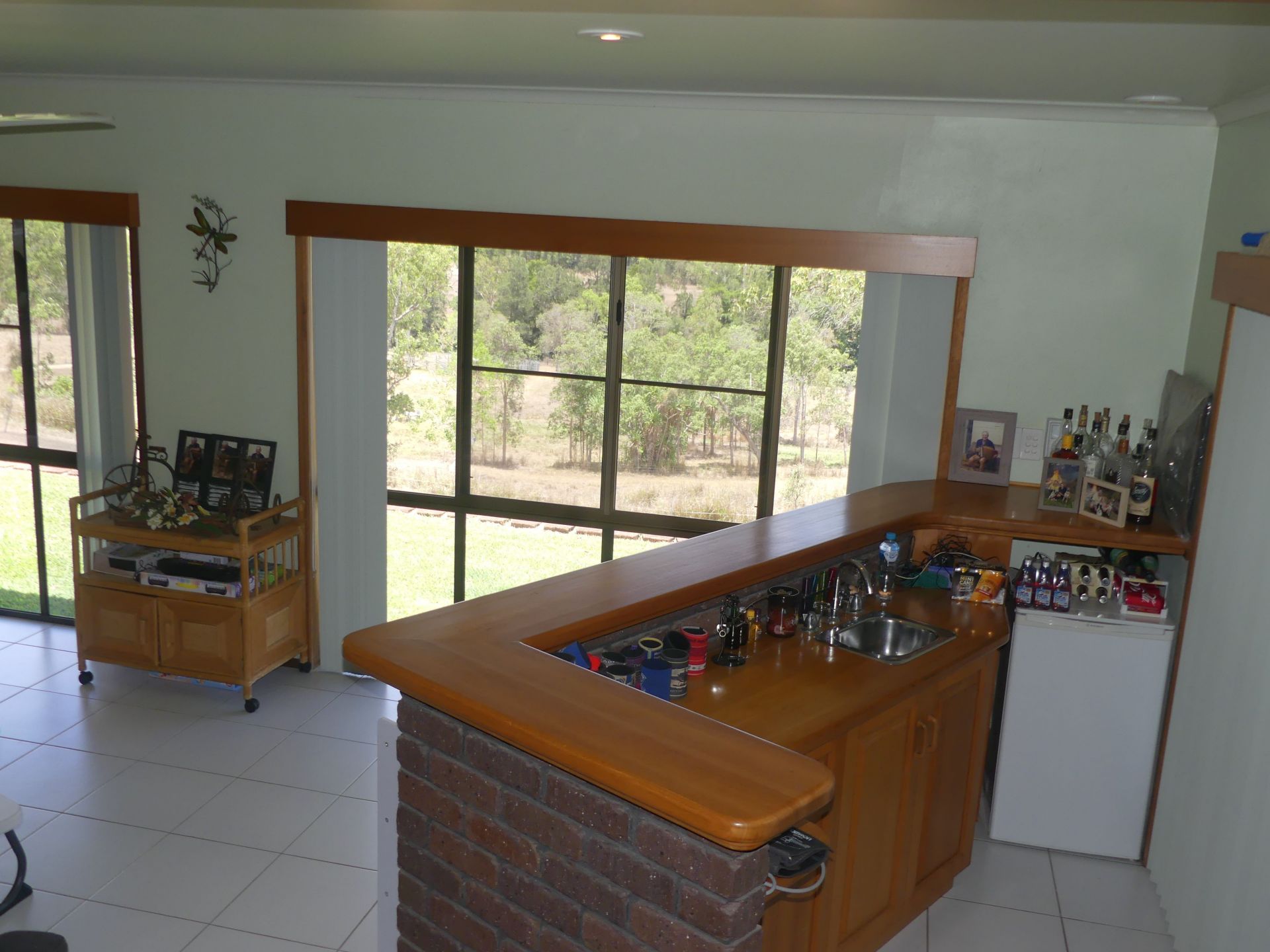 • Open plan living, high ceilings, built-in bar