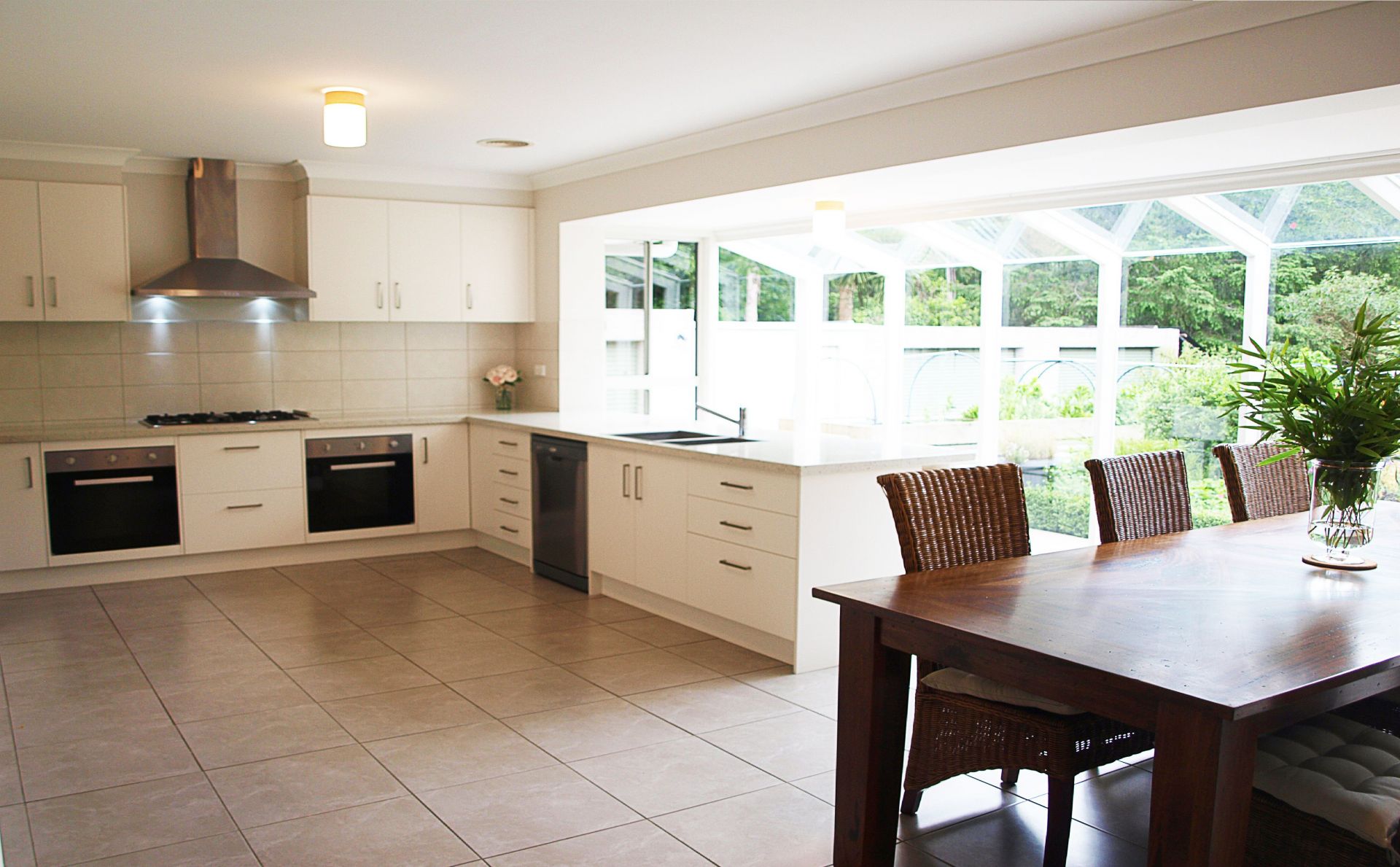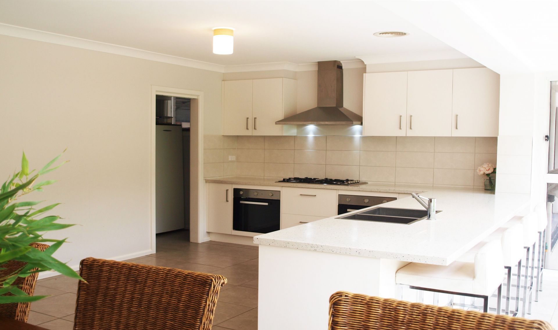 Stone bench tops and stainless appliances.