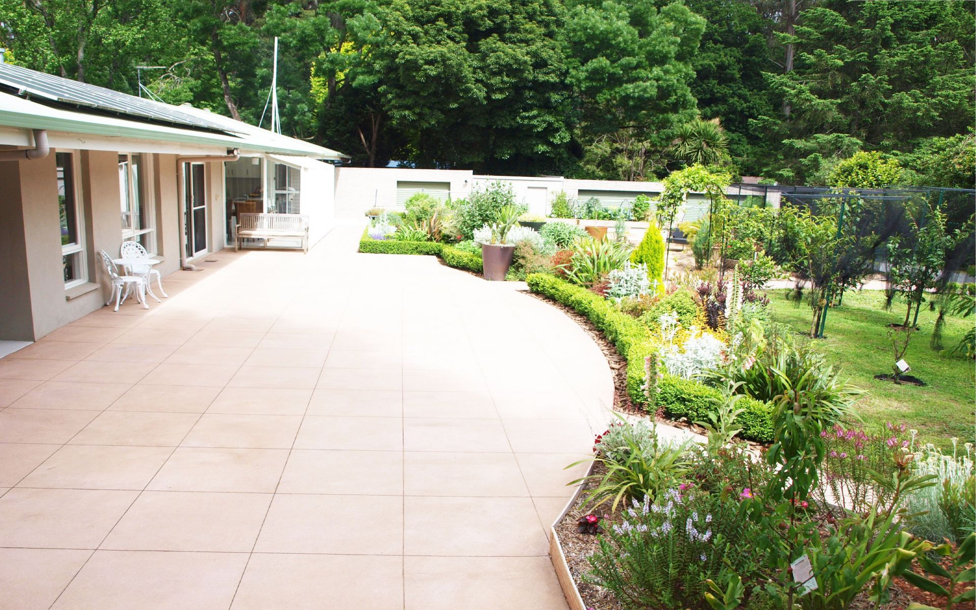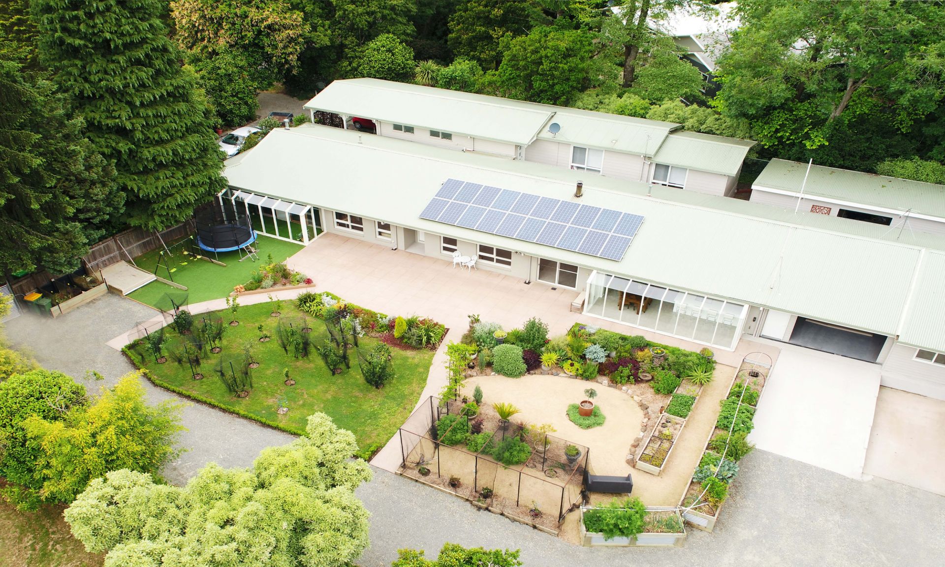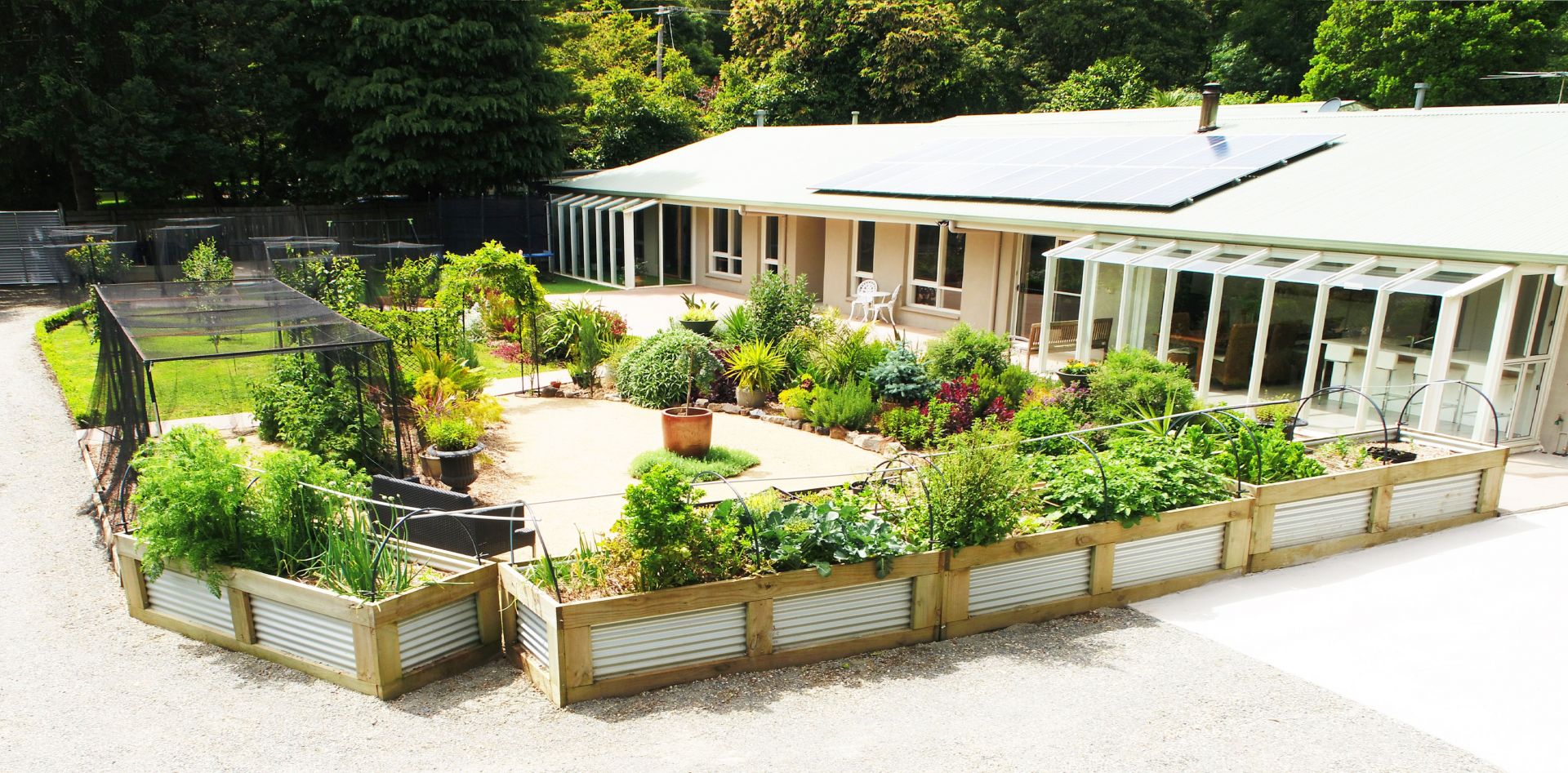 Fruit orchard (lemon, mandarin, orange, pear, apples, apricot, plums, limes, avocado, fig, raspberries, grapes, peach, nectarine, black cherry, olive & passionfruit).