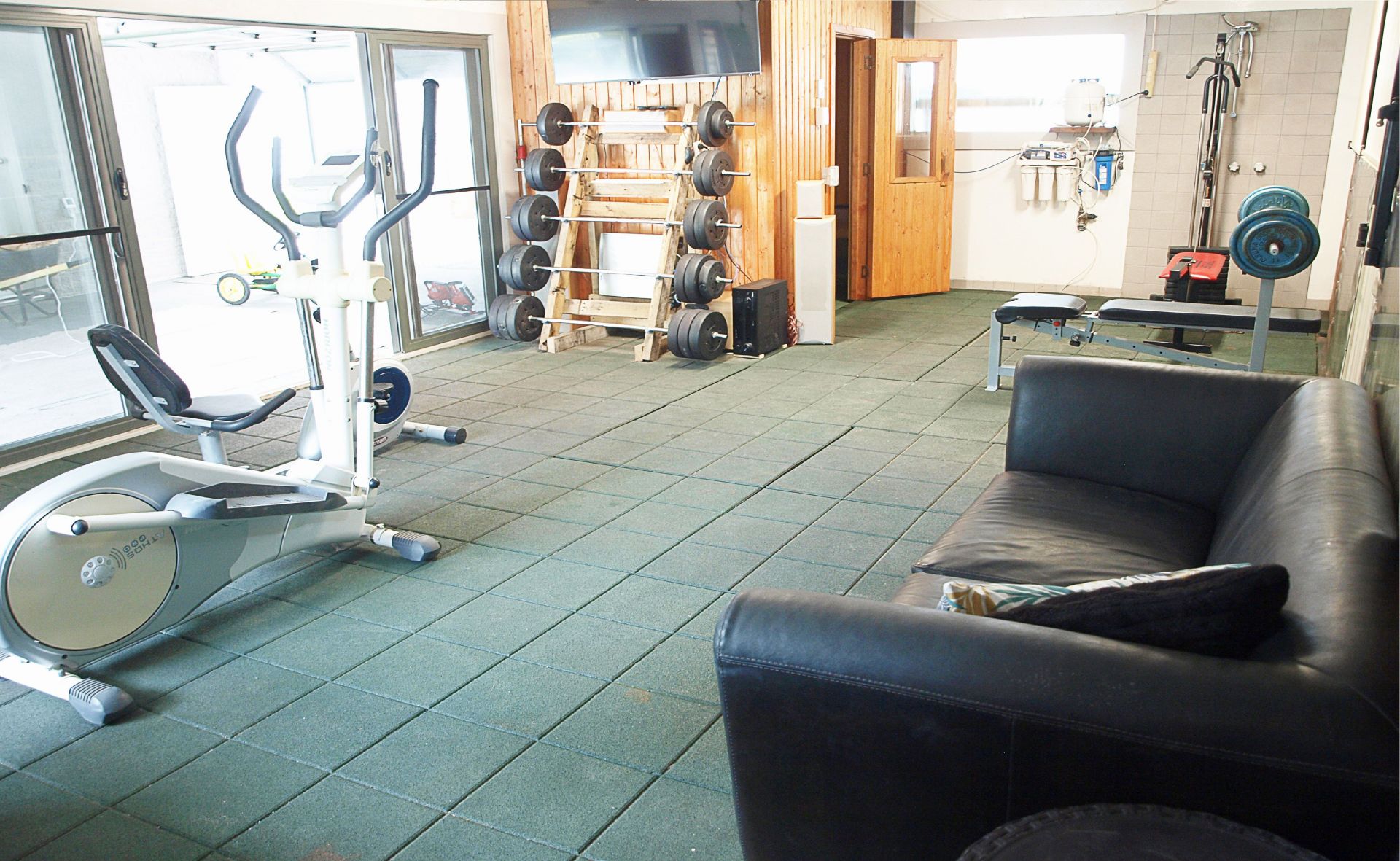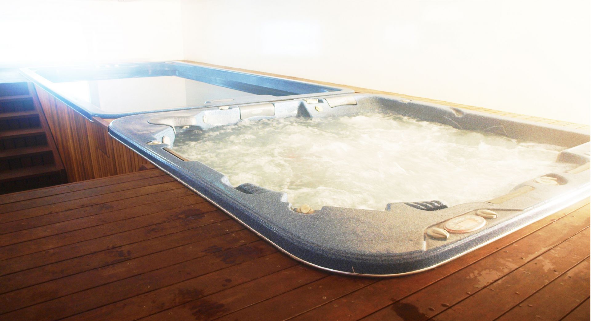 Large gymnasium with endless spa, lap pool, sauna/steamroom and shower.