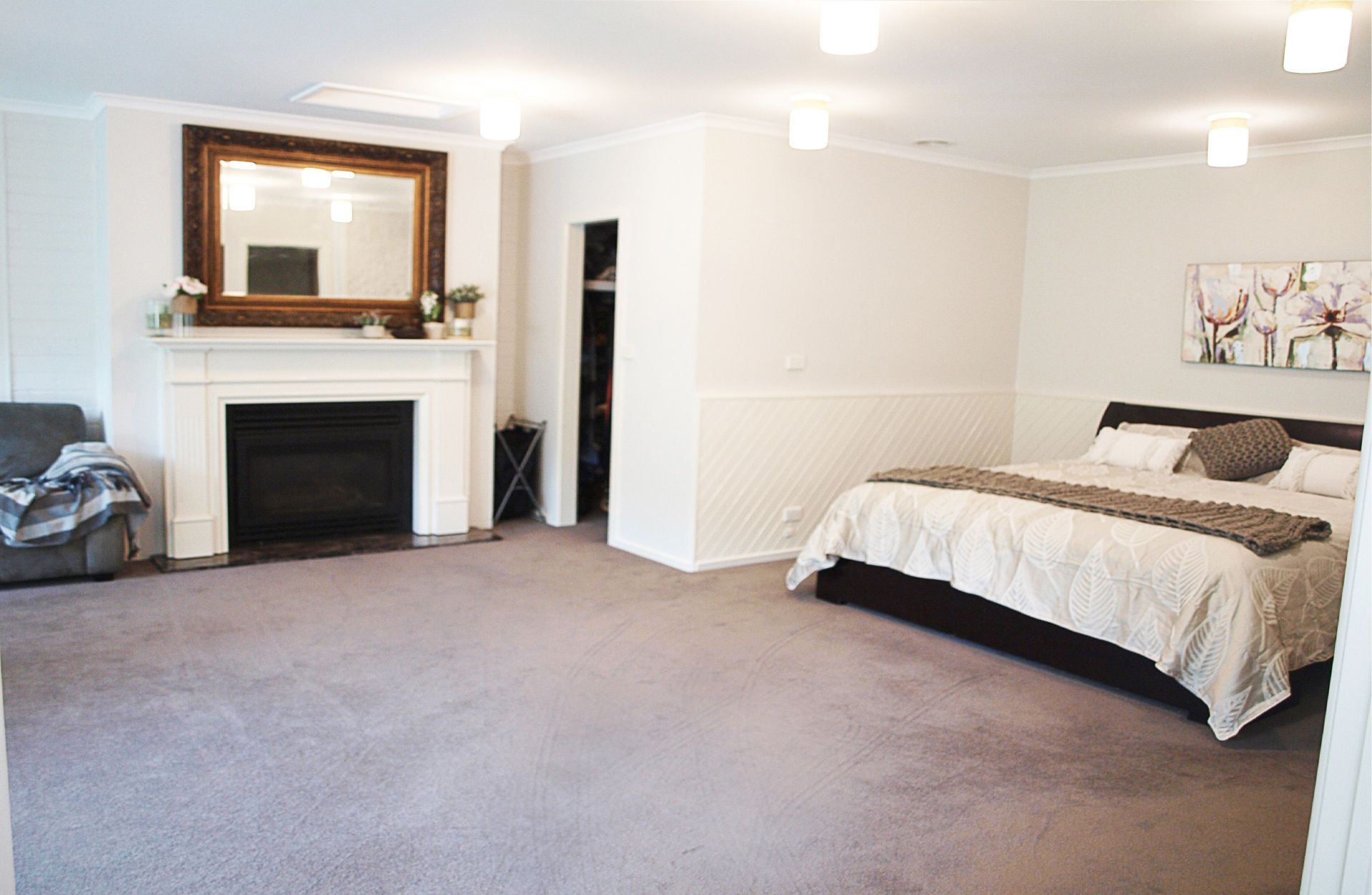 Massive master suite has ensuite, walk in robe, gas log fire, sitting area and double glazed double doors opening to own conservatory.