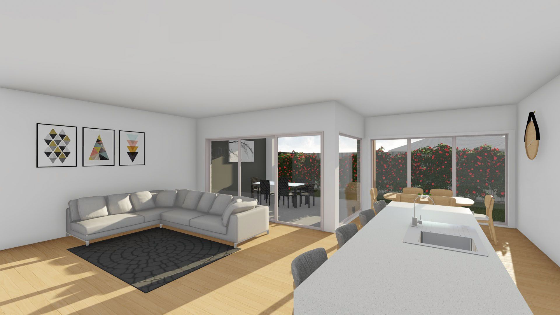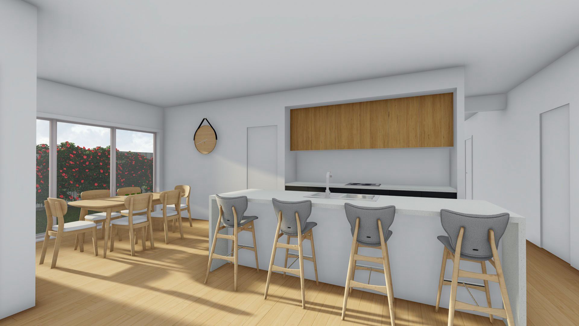 Modern open plan Living/dining with large windows to take full advantage on northerly aspects. Stylish galley kitchen complete with large chefs style pantry, plus an additional private living area. Ducted heating and cooling throughout for year round comfort.
