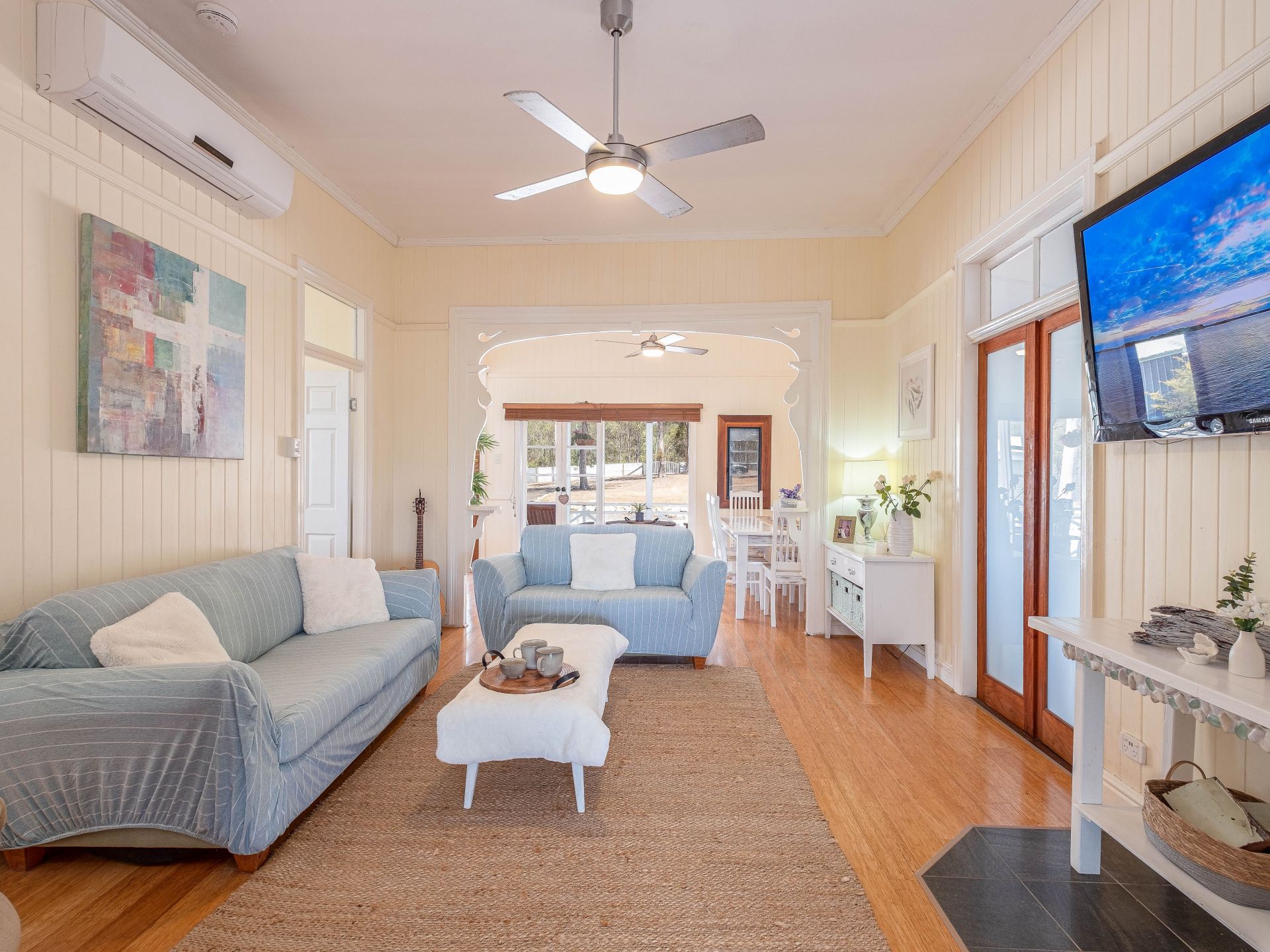 Pretty as a picture this renovated cottage is totally move in ready. Set on one and a quarter acres of land (4979sqm). Majestic valley views looking across to the quaint Imbil township, only 5 mins drive. This lovely family home has all the charm that you would expect from a country cottage without compromising on modern comforts, including A/C, great internet & modern kitchen and bathroom. Bamboo flooring and high ceilings throughout the home. Three large bedrooms with a screened in outdoor lounge off the master bedroom.