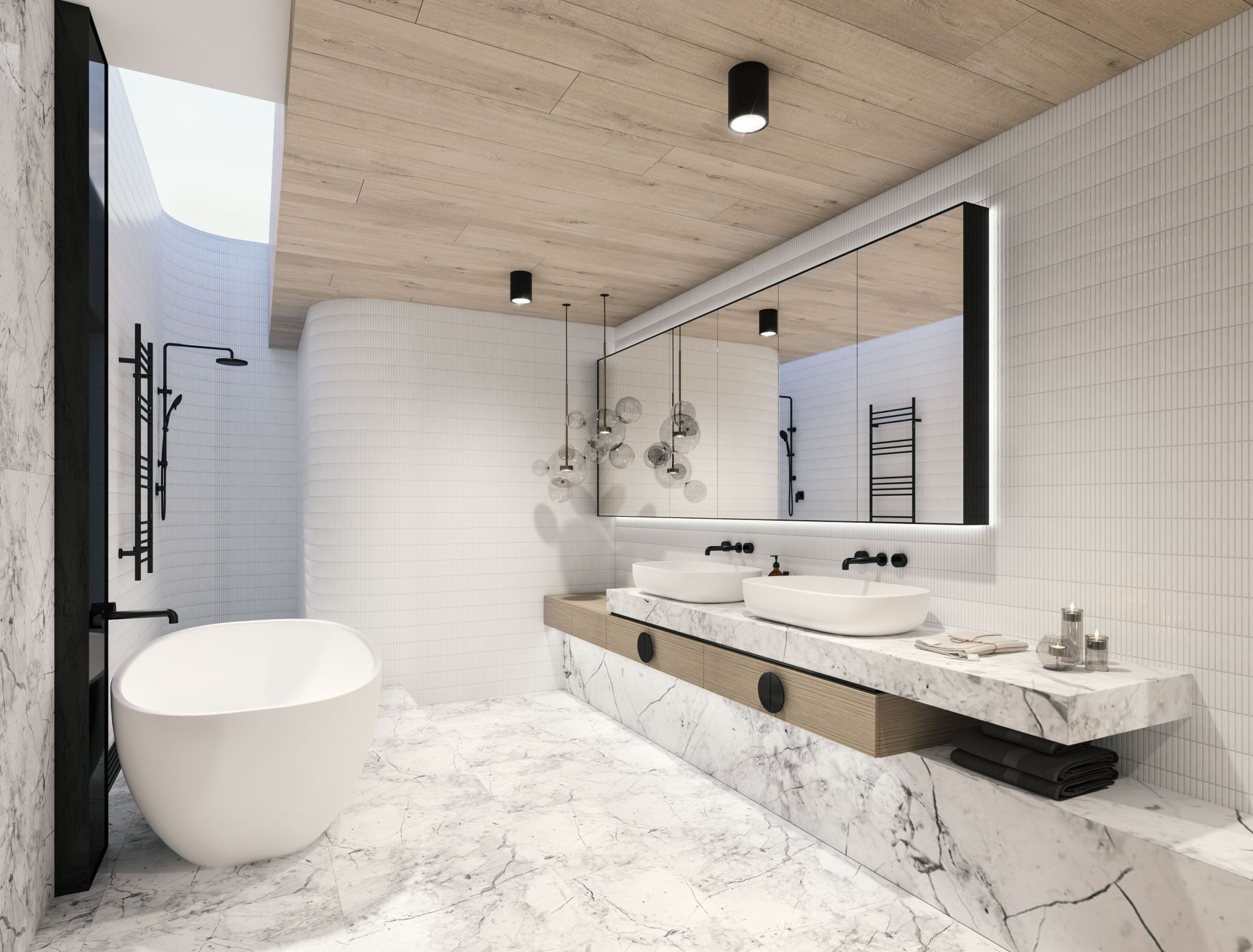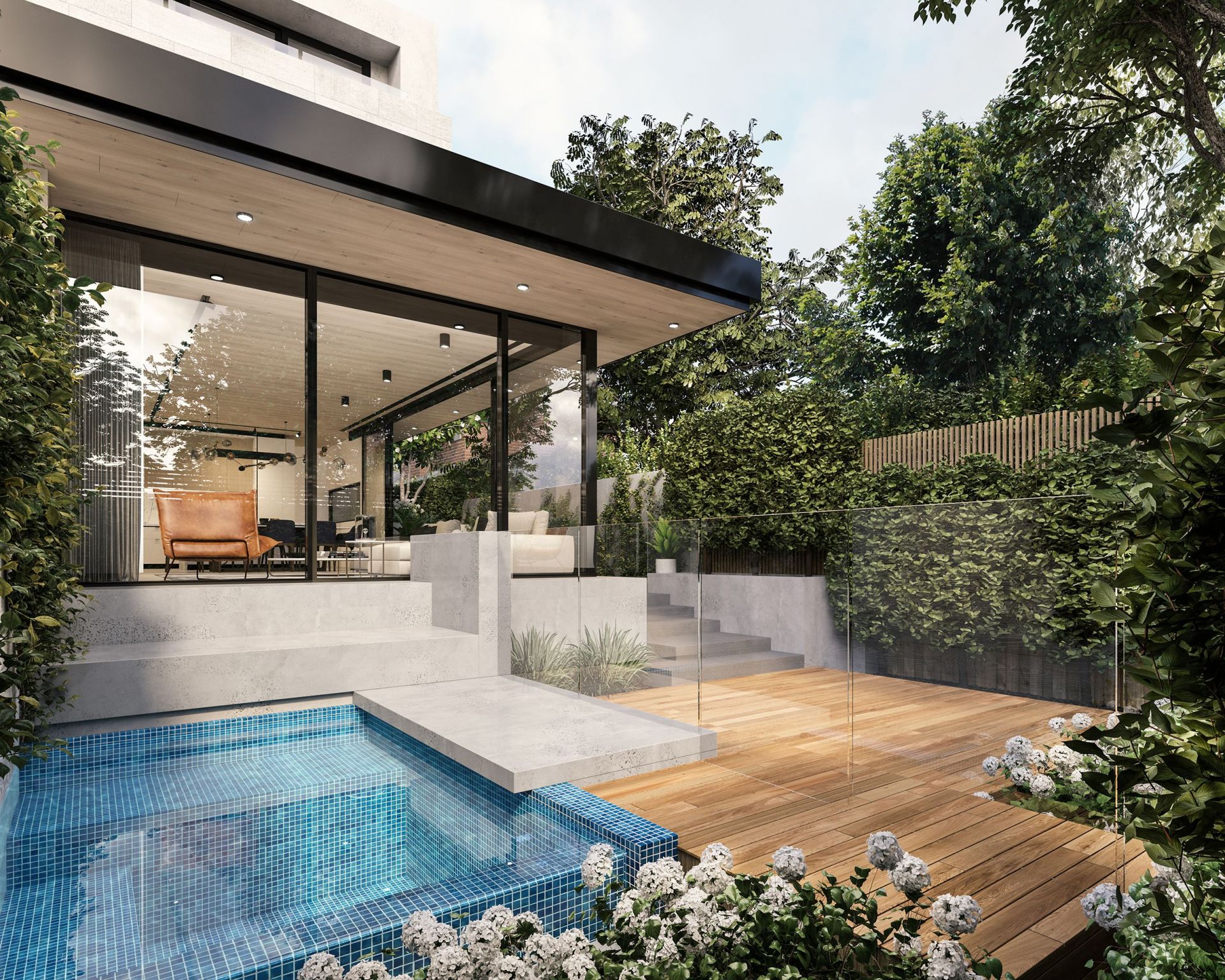 Curated with a refined architectural edge, and a focus on natural day light drawn from expanses of glass & sky lights. A blend of Italian marble, premium Gaggenau appliances, Gessi tapware, custom joinery & Lucretia lighting, French oak timber finishes & heated polished concrete caters to the most discerning and fastidious buyer.