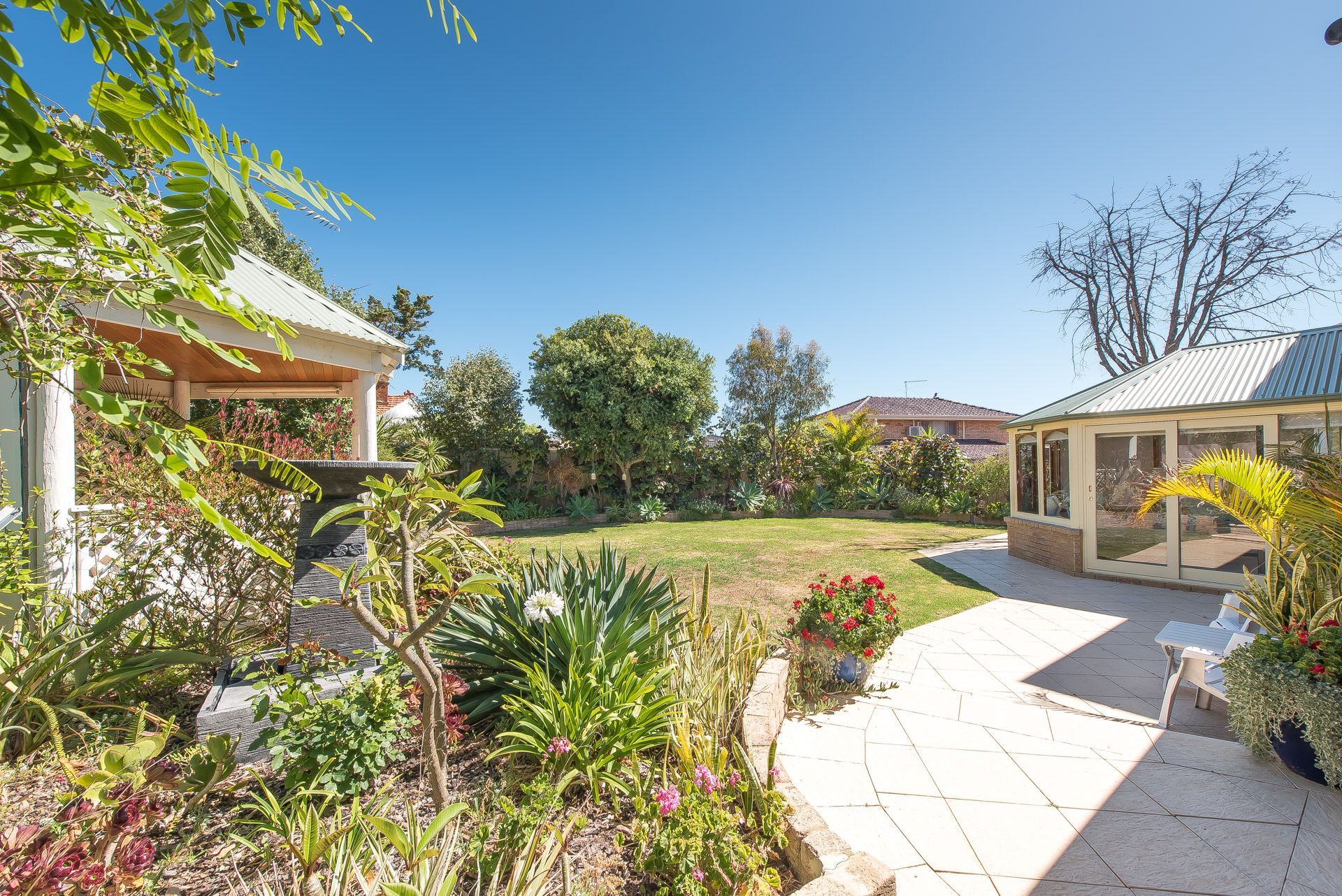 Sun lounge with views to the rear garden and gazebo.