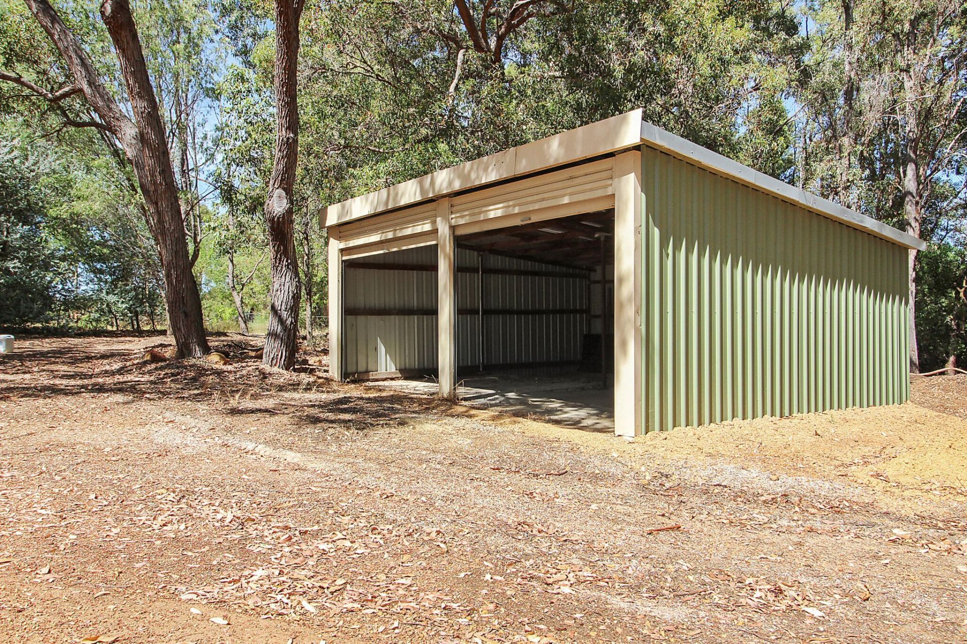 For those who need a shed there is a 10m x 15m colour bond structure with a 3.4m high entry and a gabled roof, concrete flooring and 15 amp power points. On the roof are the Solar Panels that are generating a return from Synergy with a Net Feed-in tariff (47c Kw) plus renewable energy consumption (For 2019 the total cost of power above return was $428) Attached to the shed is a mesh enclosed bridge that leads to a large Shade House which is set up to house cats as well as plants.