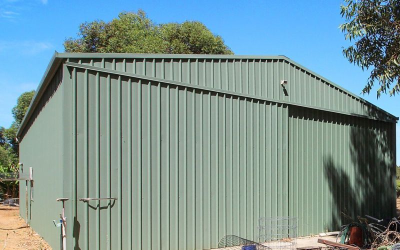 • Large Shed 10m x 15m colour bond structure with a 3.4m high entry and a gabled roof,