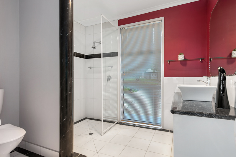 The open plan kitchen, with a large gas cook top and electric oven stove, dish washer and plenty of bench space has floor to ceiling windows with the same amazing view and catches the sun all day, acting as a great solar heater for the winter. Both these rooms open onto a large 5.0 x 3.5 mtr deck with automatic vergola roof.